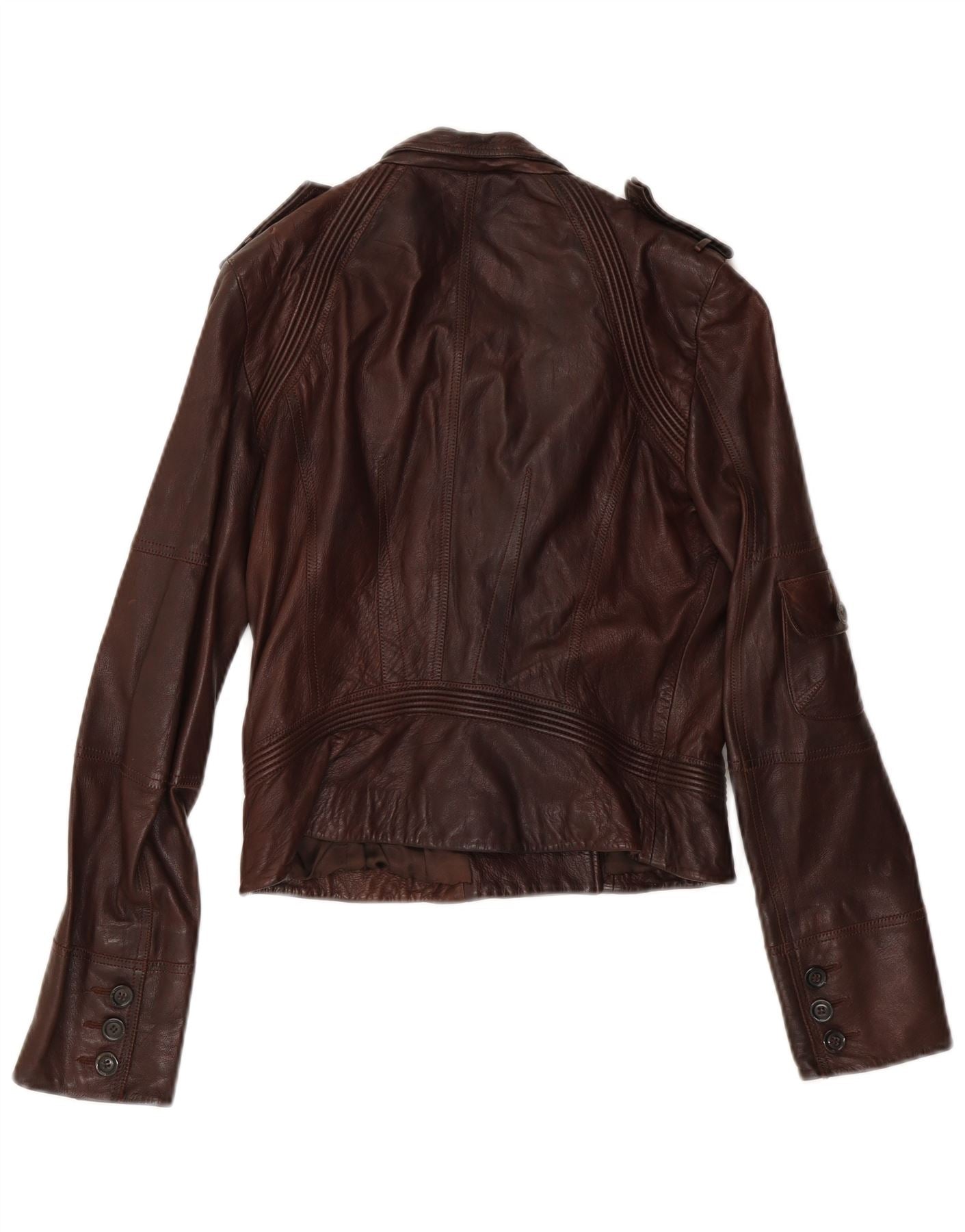 Giacca in pelle militare corta da donna Karen Millen UK 12 Pelle marrone medio