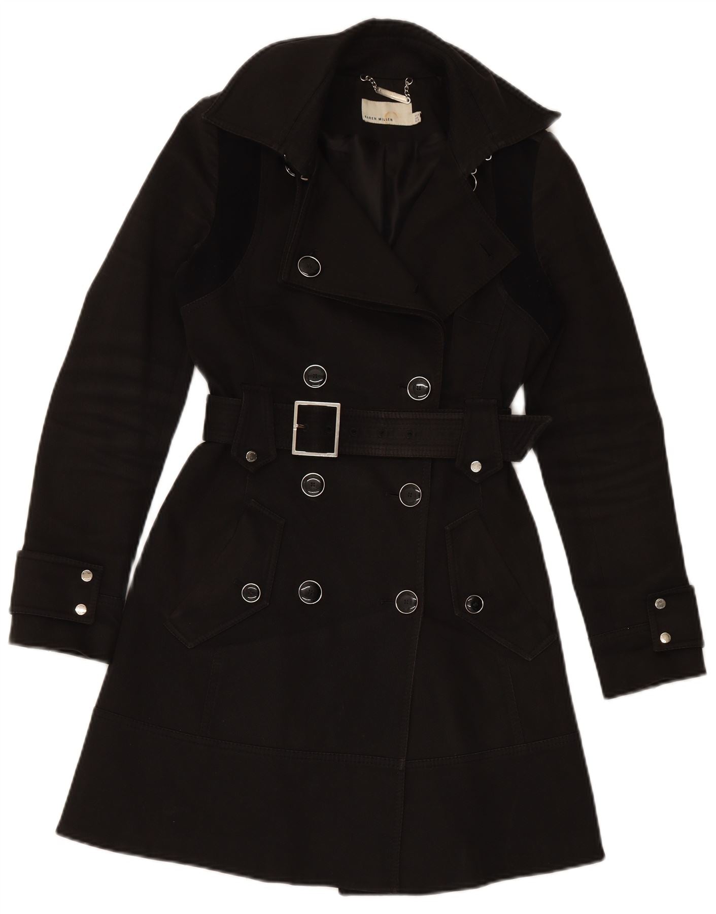 Trench doppiopetto da donna KAREN MILLEN UK 10 piccolo cotone nero