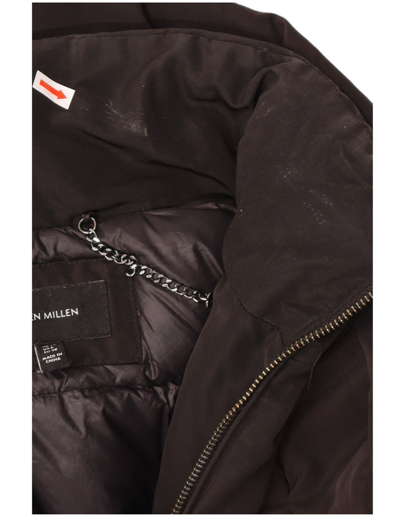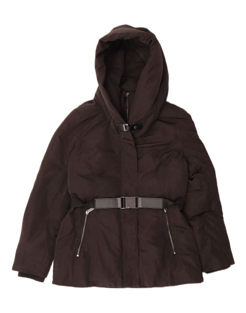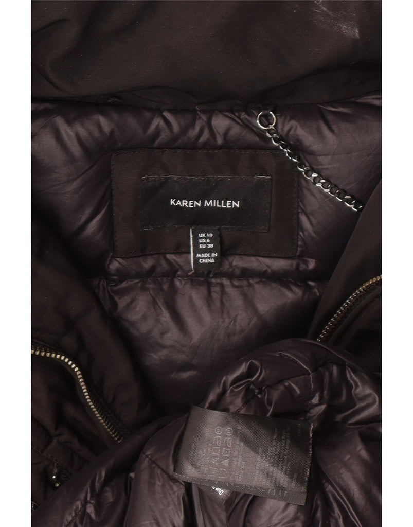 KAREN MILLEN Womens Hooded Padded Jacket UK 10 Small Brown Polyester