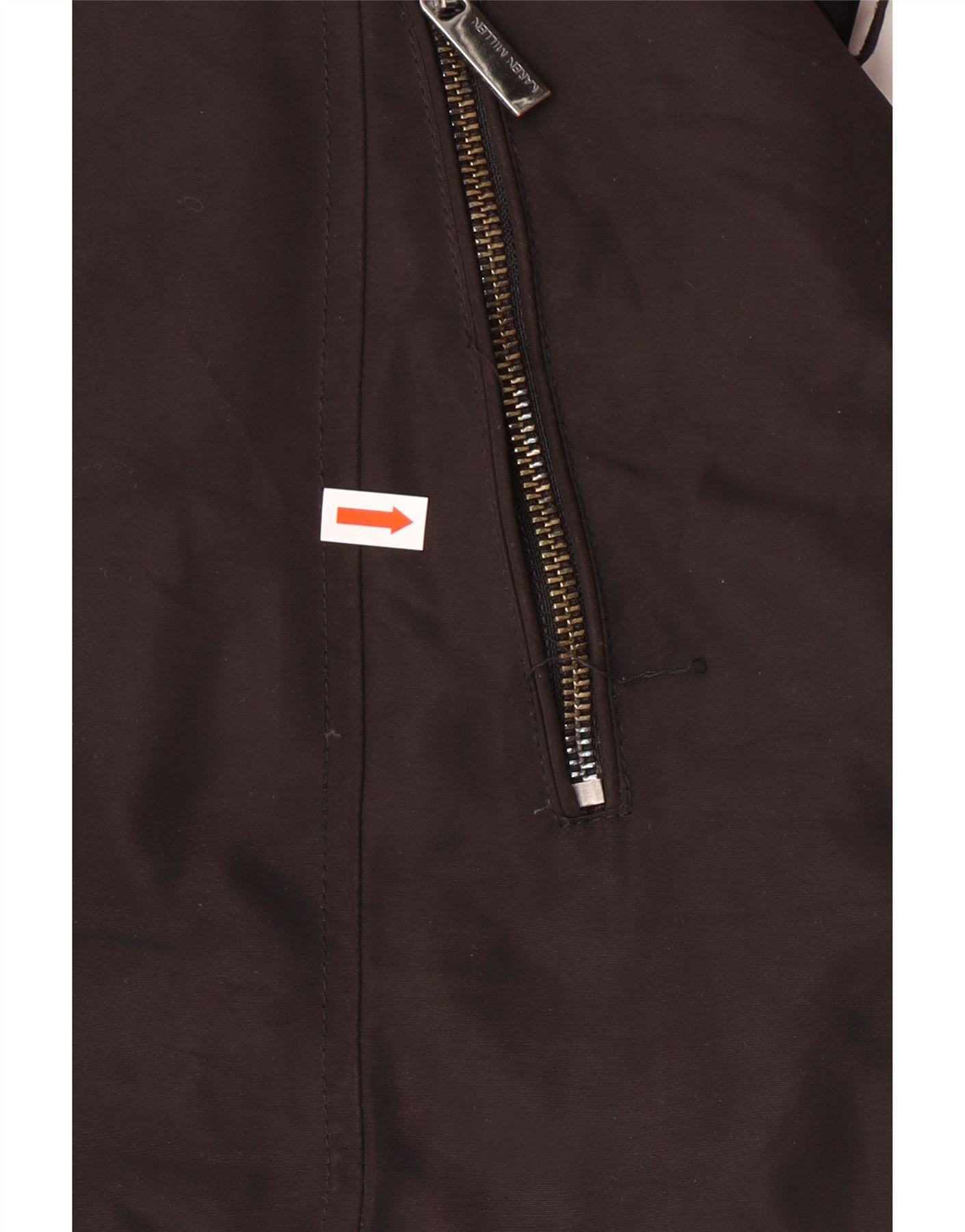 - AI Description: This Karen Millen womens padded jacket is crafted from a woven fabric with a padded finish in a rich brown hue. It features a high neck and long sleeves for warmth. A practical hood and a zip closure enhance its functionality. The belted waist with a buckle accent creates a flattering silhouette. Zipped pockets add convenience. This regular fit puffer jacket offers modern style.