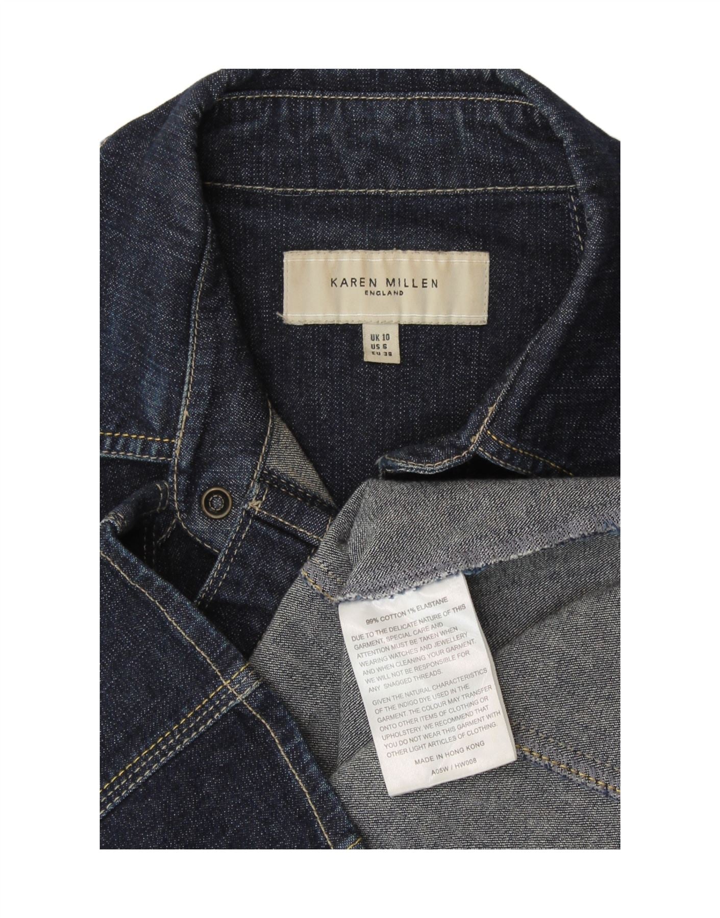 Camicia di jeans militare da donna KAREN MILLEN UK 10 piccola in cotone blu