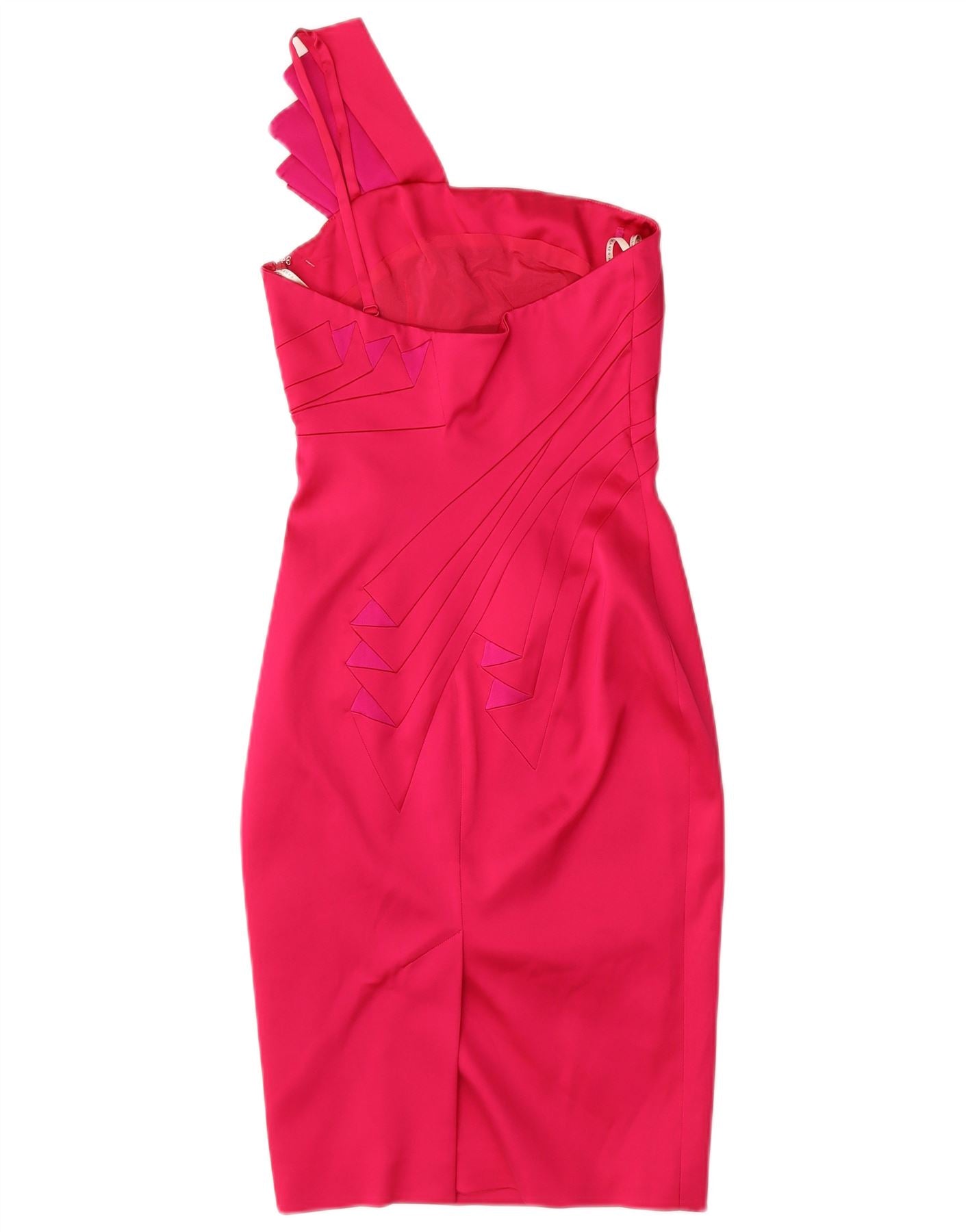 KAREN MILLEN Womens One Shoulder Dress UK 8 Small Pink Acetate