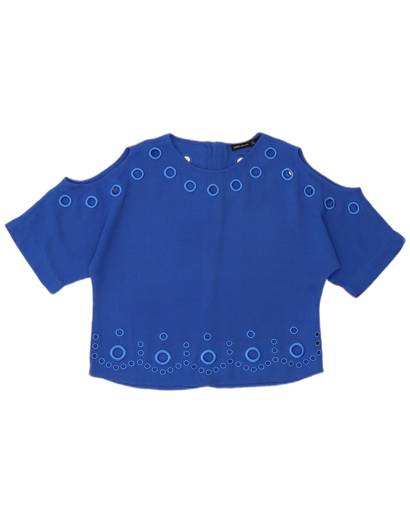 KAREN MILLEN Top corto da donna oversize in camicetta UK 10 piccolo poliestere blu