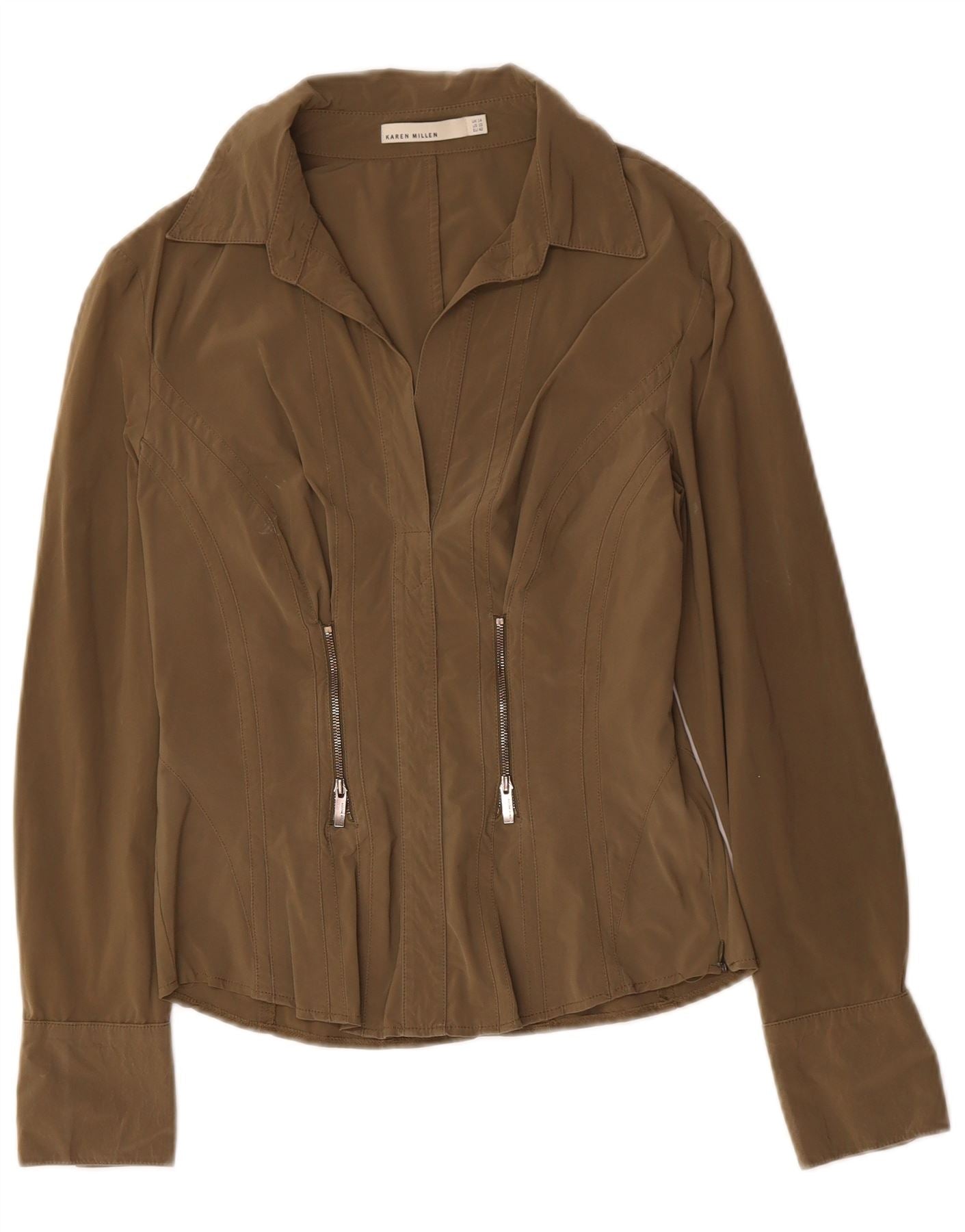 KAREN MILLEN Womens Pullover Shirt Blouse UK 14 Medium Khaki Polyamide