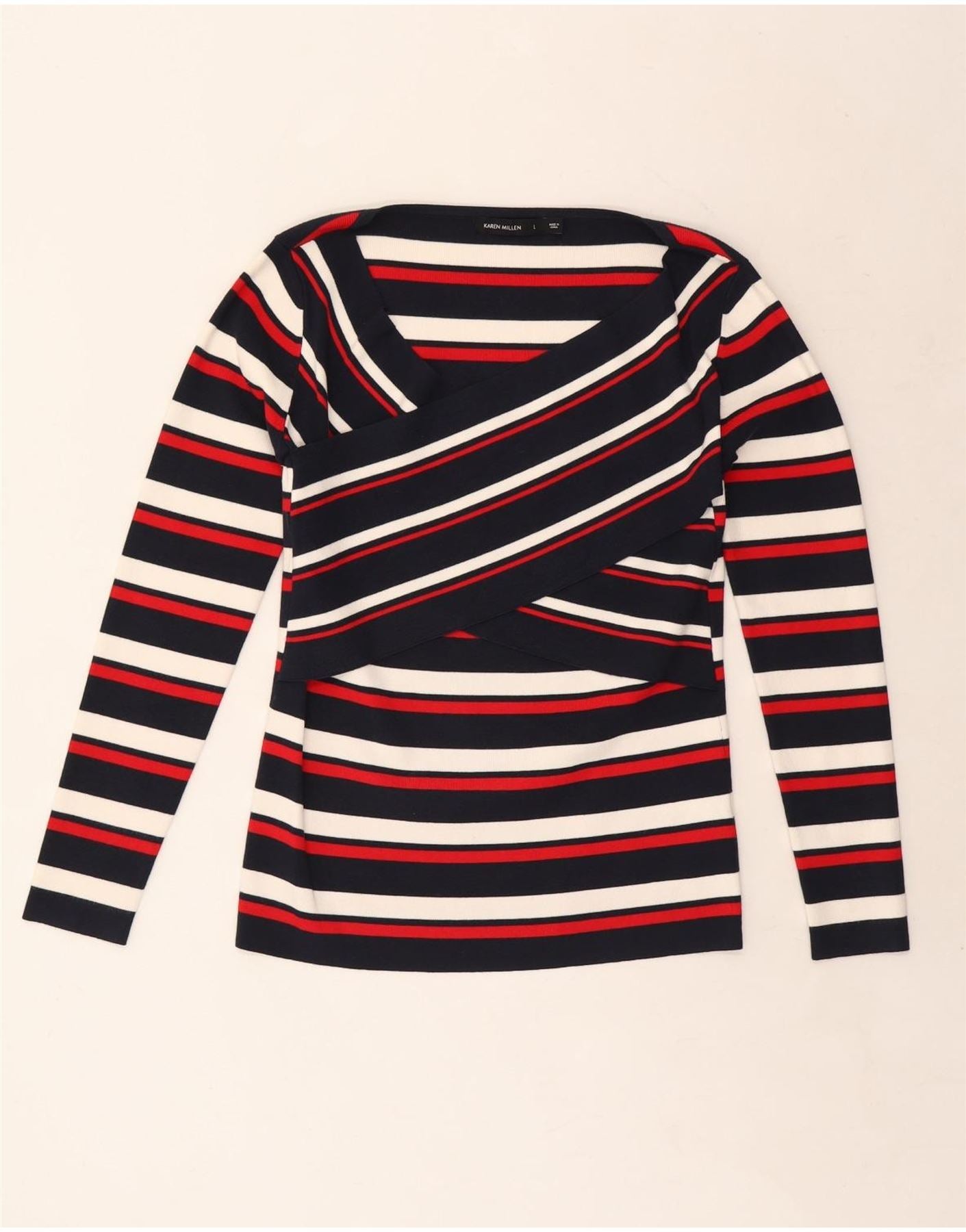 KAREN MILLEN Top da donna a maniche lunghe UK 14 Large a righe multicolori