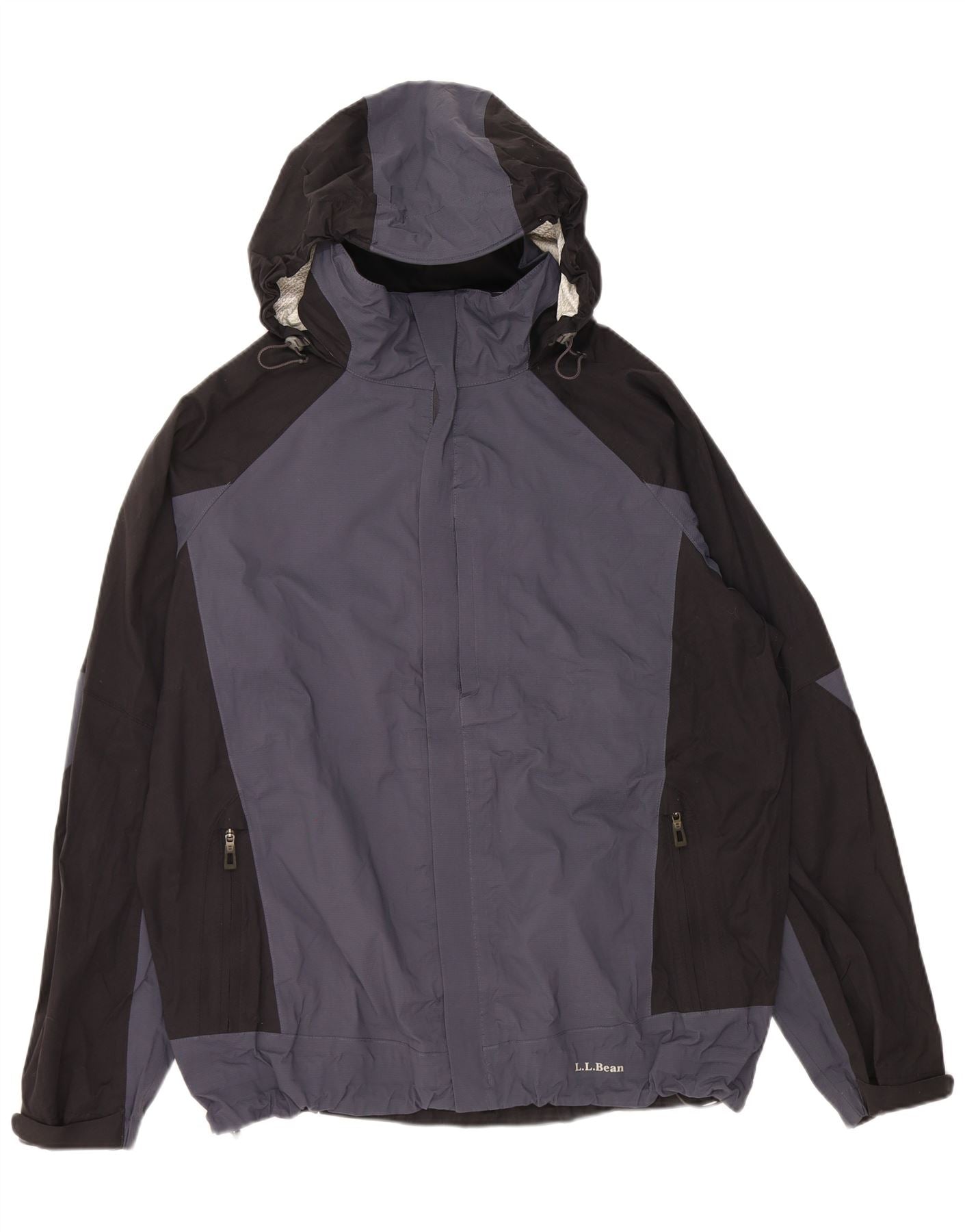 L.L.BEAN Mens Hooded Windbreaker Jacket UK 40 Large Navy Blue Colourblock