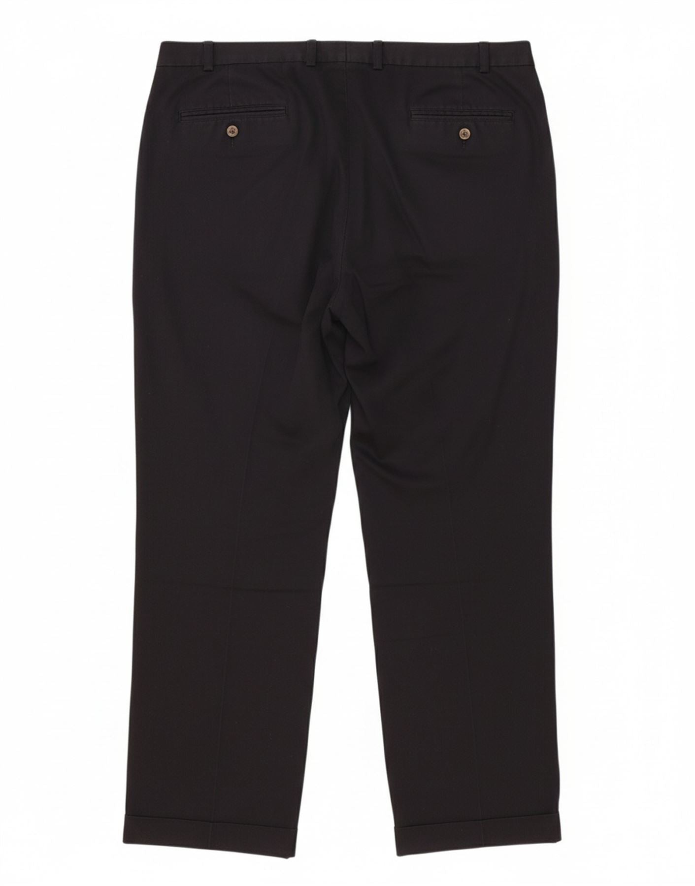 - AI Description: These L.L.Bean men's Chino Trousers are crafted from 100 percent cotton, offering a comfortable feel. They feature a classic straight leg and a regular fit for timeless style. The button and zip closure ensures a secure fit. Practical pockets add functionality. The plain black design provides versatile wear. The fabric offers a subtle stretch for ease of movement, perfect for everyday comfort.