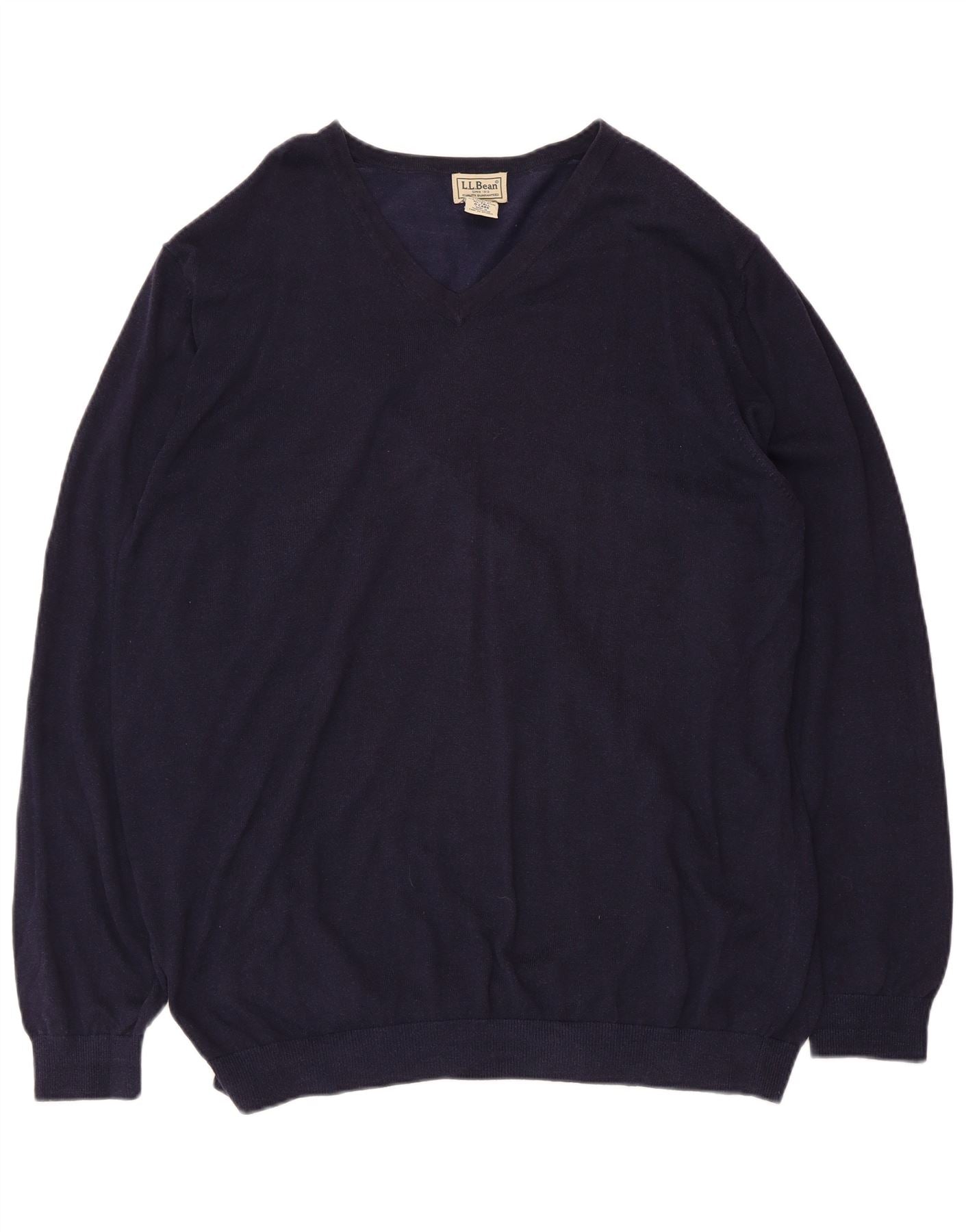 Maglione maglione alto da uomo con scollo a V L.L.Bean XL in cotone blu navy