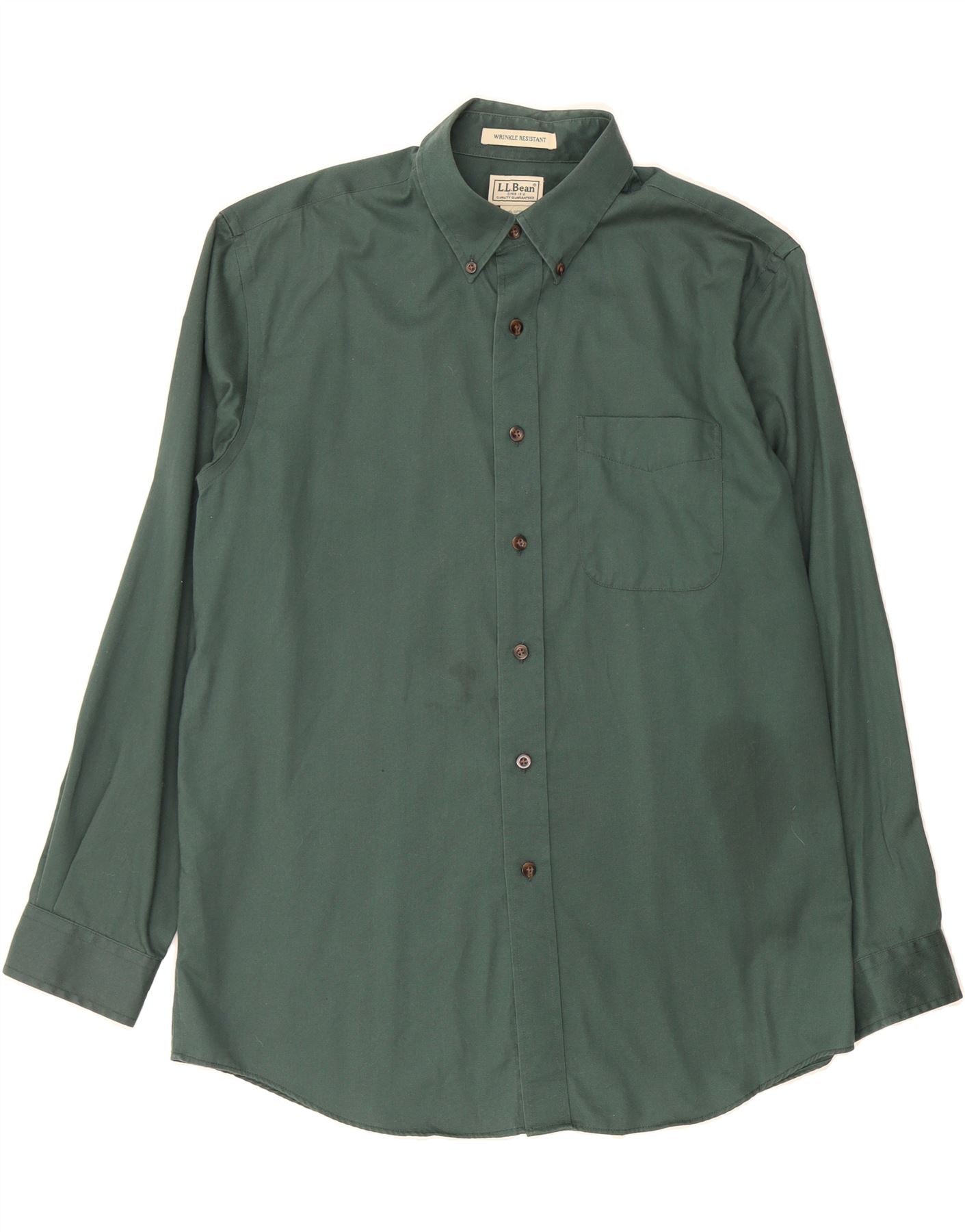 L.L.BEAN Mens Wrinkle Resistant Shirt Medium Green Cotton