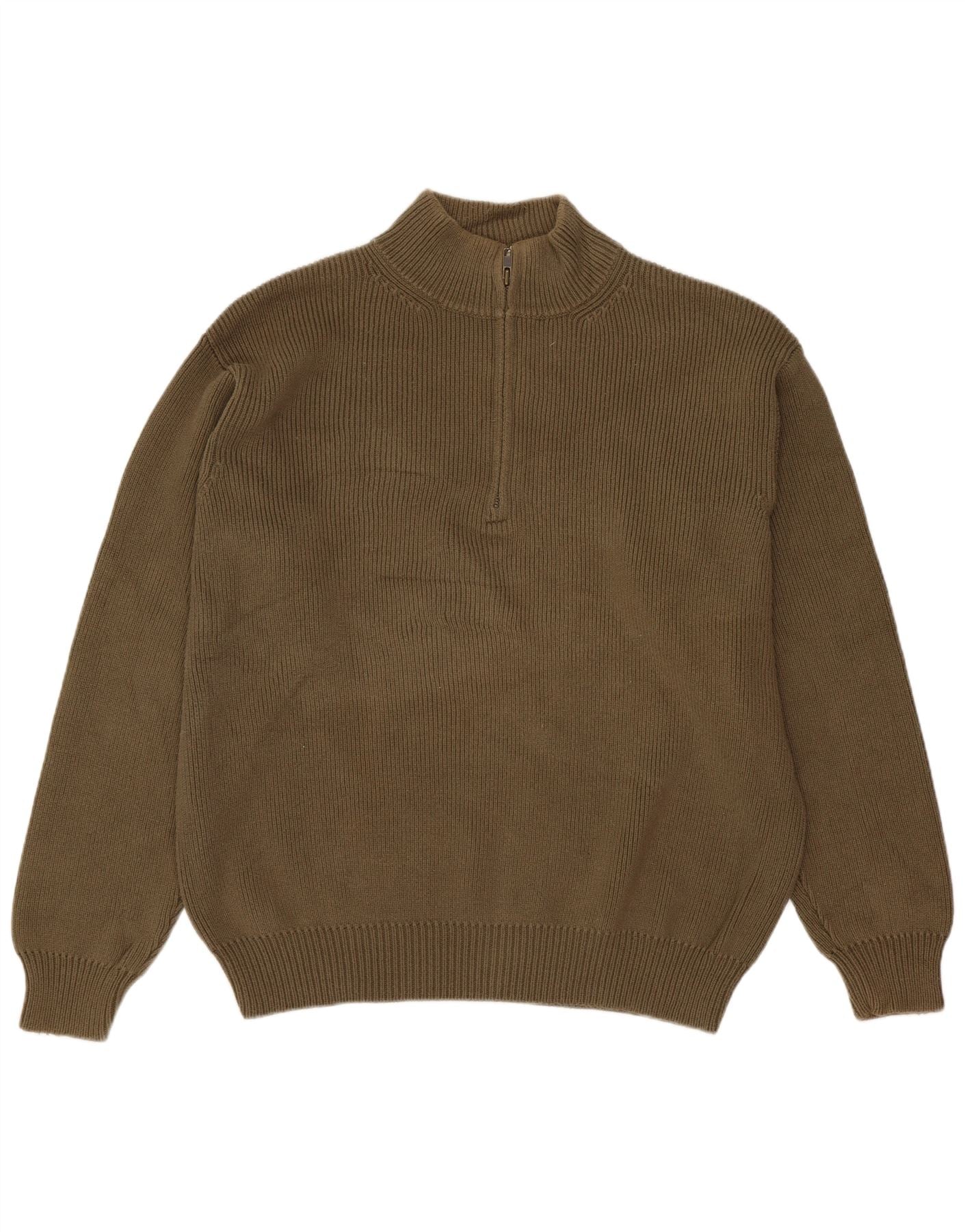 Maglione da uomo con collo con zip L.L.Bean, cotone kaki grande