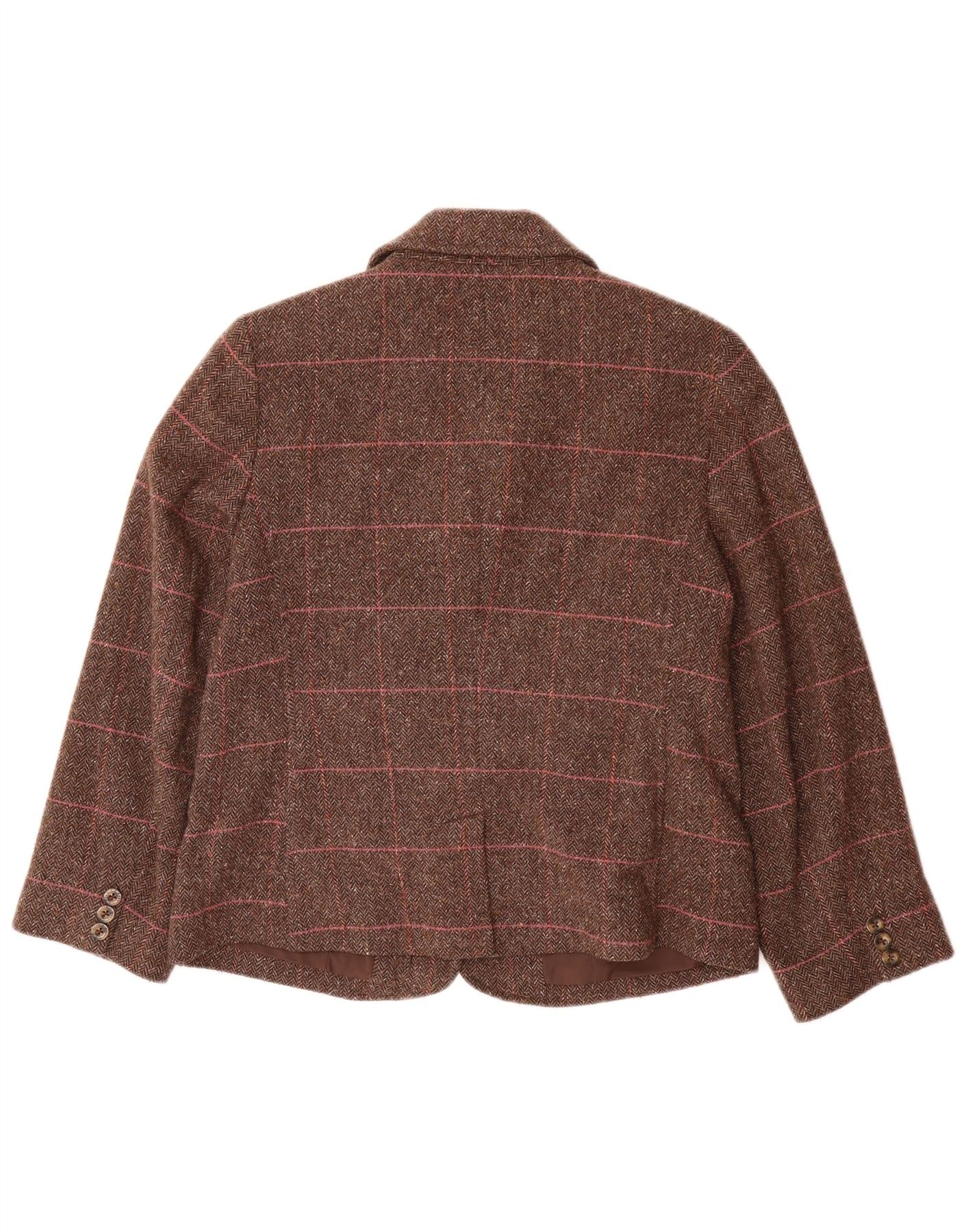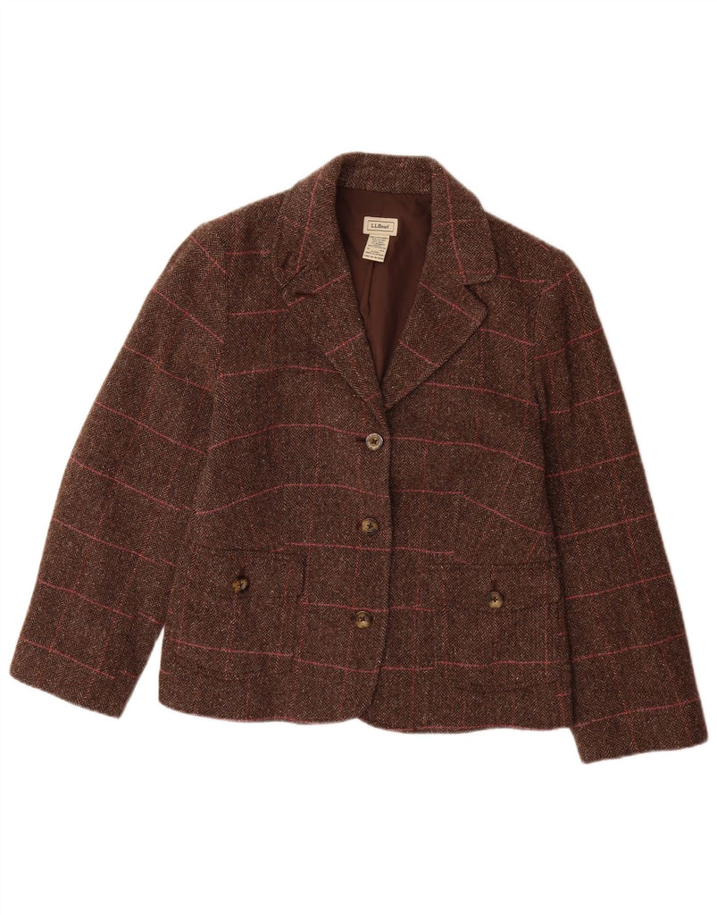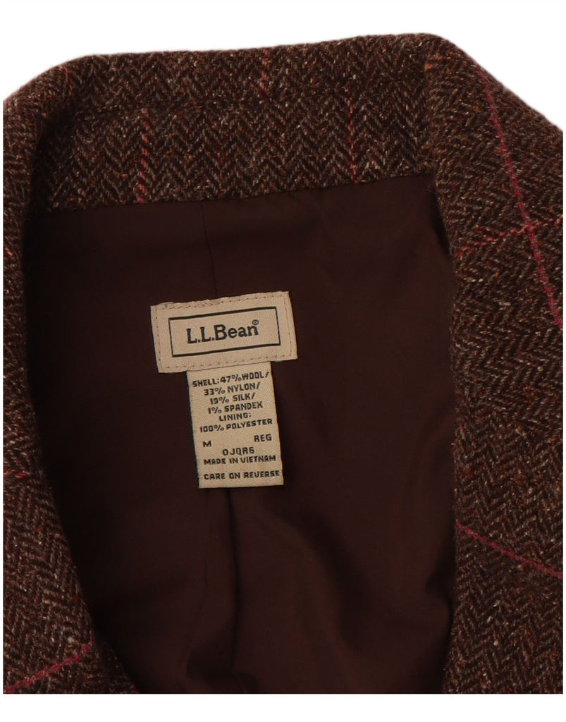 L.L.BEAN Womens 3 Button Blazer Jacket UK 14 Medium Brown Herringbone Wool