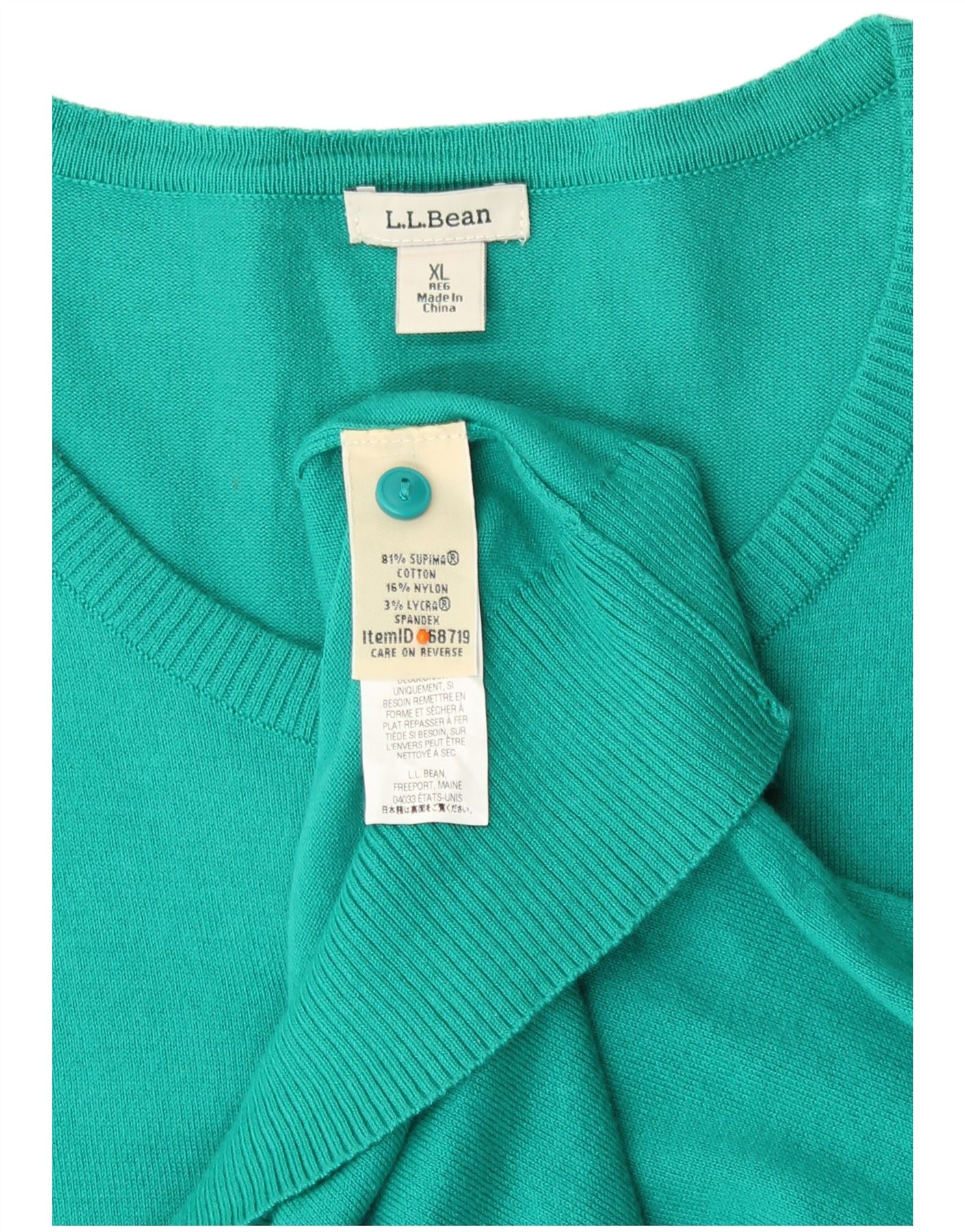 Maglione cardigan da donna L.L.BEAN UK 18 XL cotone turchese