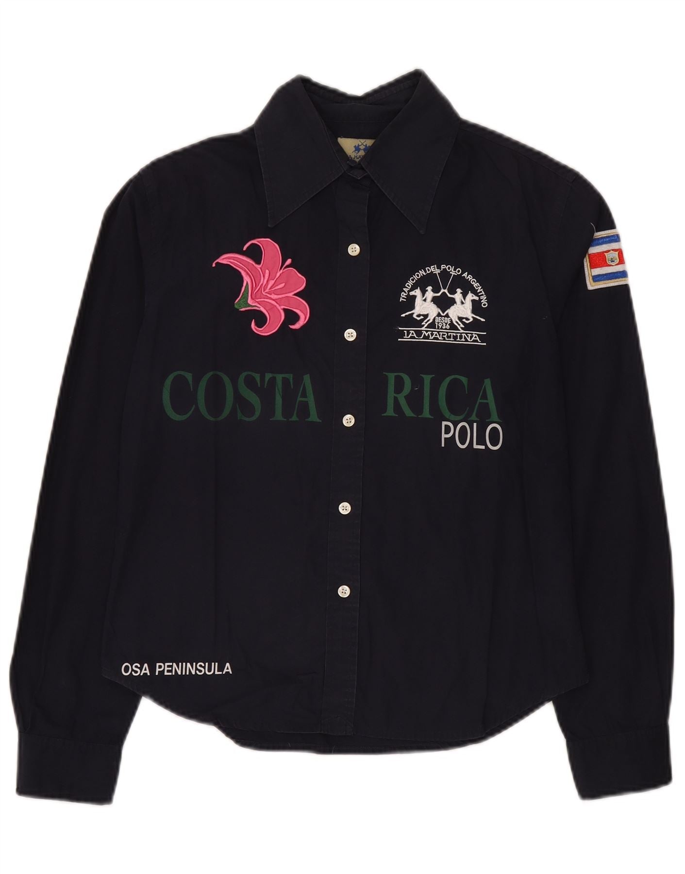 Camicia grafica da donna LA MARTINA UK 16 grande cotone blu navy
