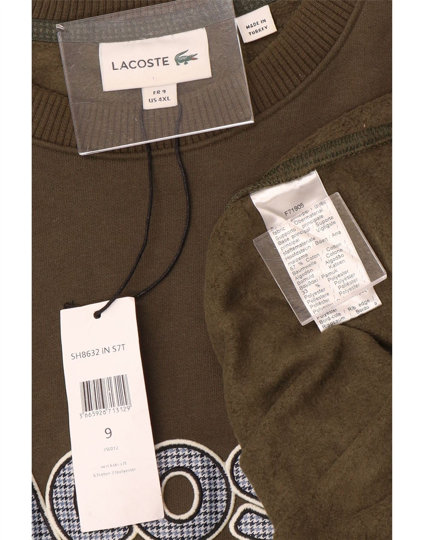 LACOSTE Mens Graphic Sweatshirt Jumper Size 9 4XL Khaki Cotton