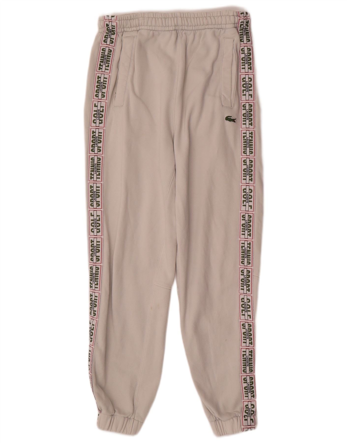 LACOSTE Mens Graphic Tracksuit Trousers Joggers Size 2 XS White Cotton