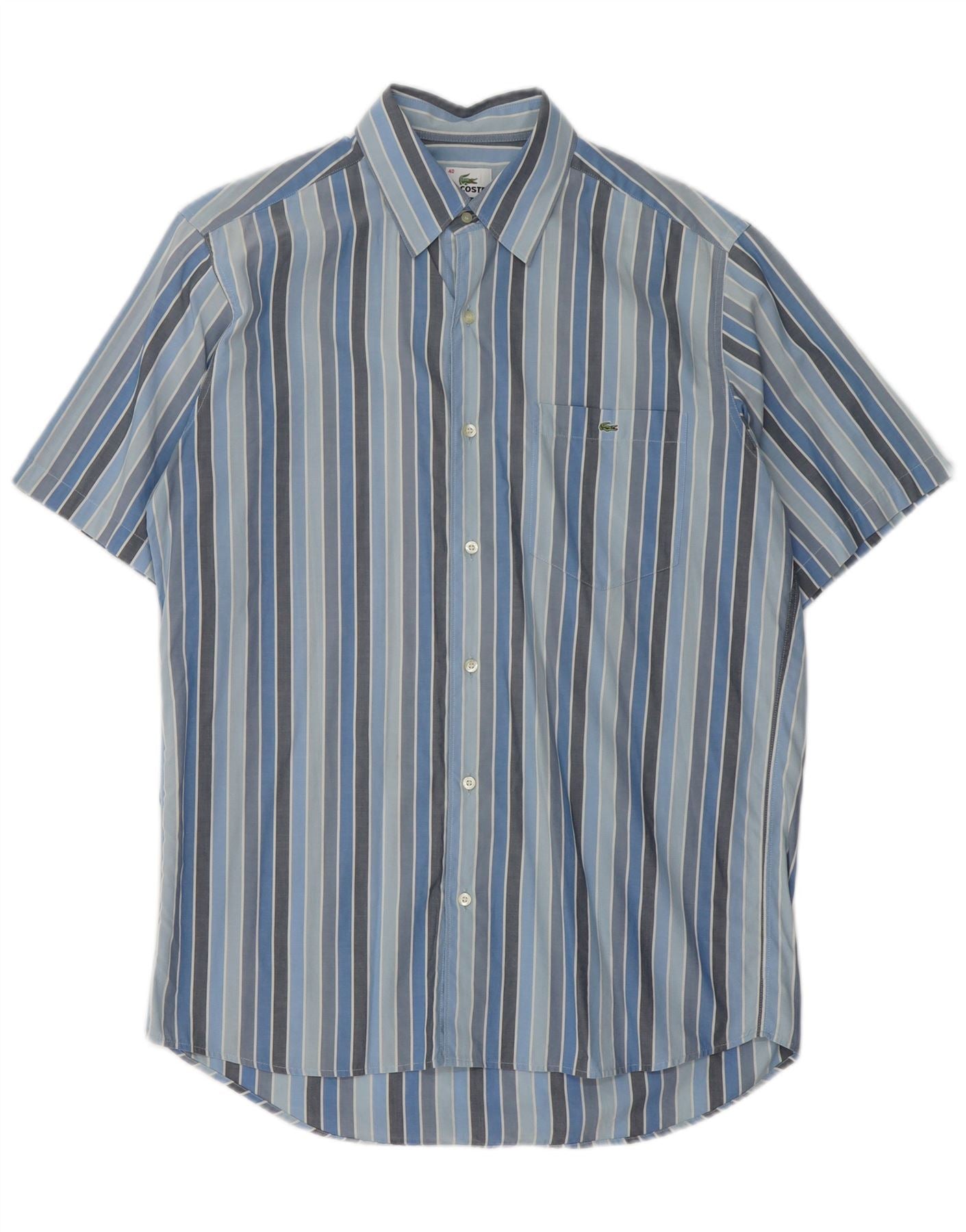 LACOSTE Camicia da uomo a maniche corte taglia 40 Cotone a righe blu medio