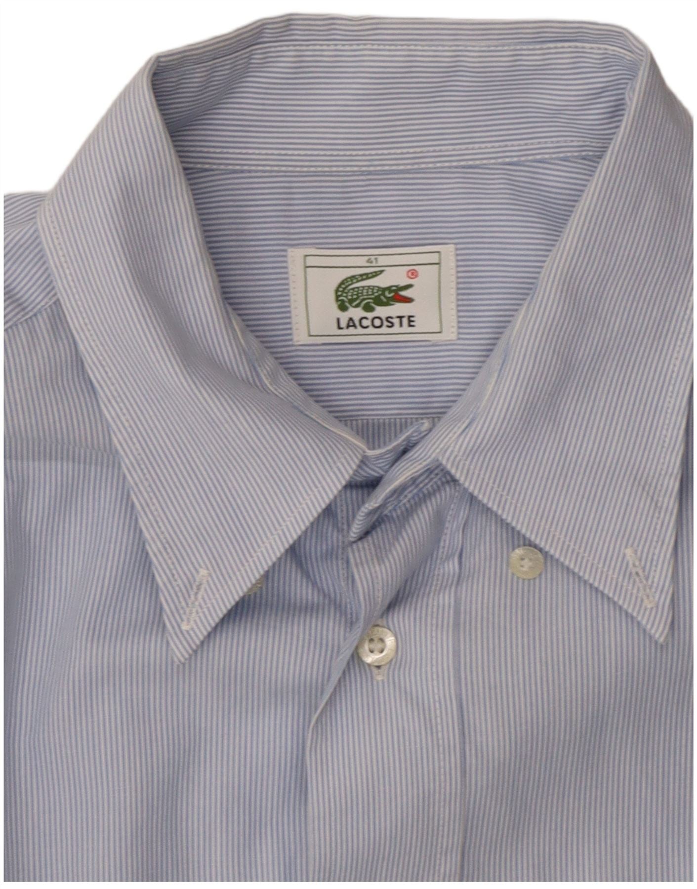 LACOSTE Camicia a maniche corte da uomo taglia 41 grande cotone gessato blu
