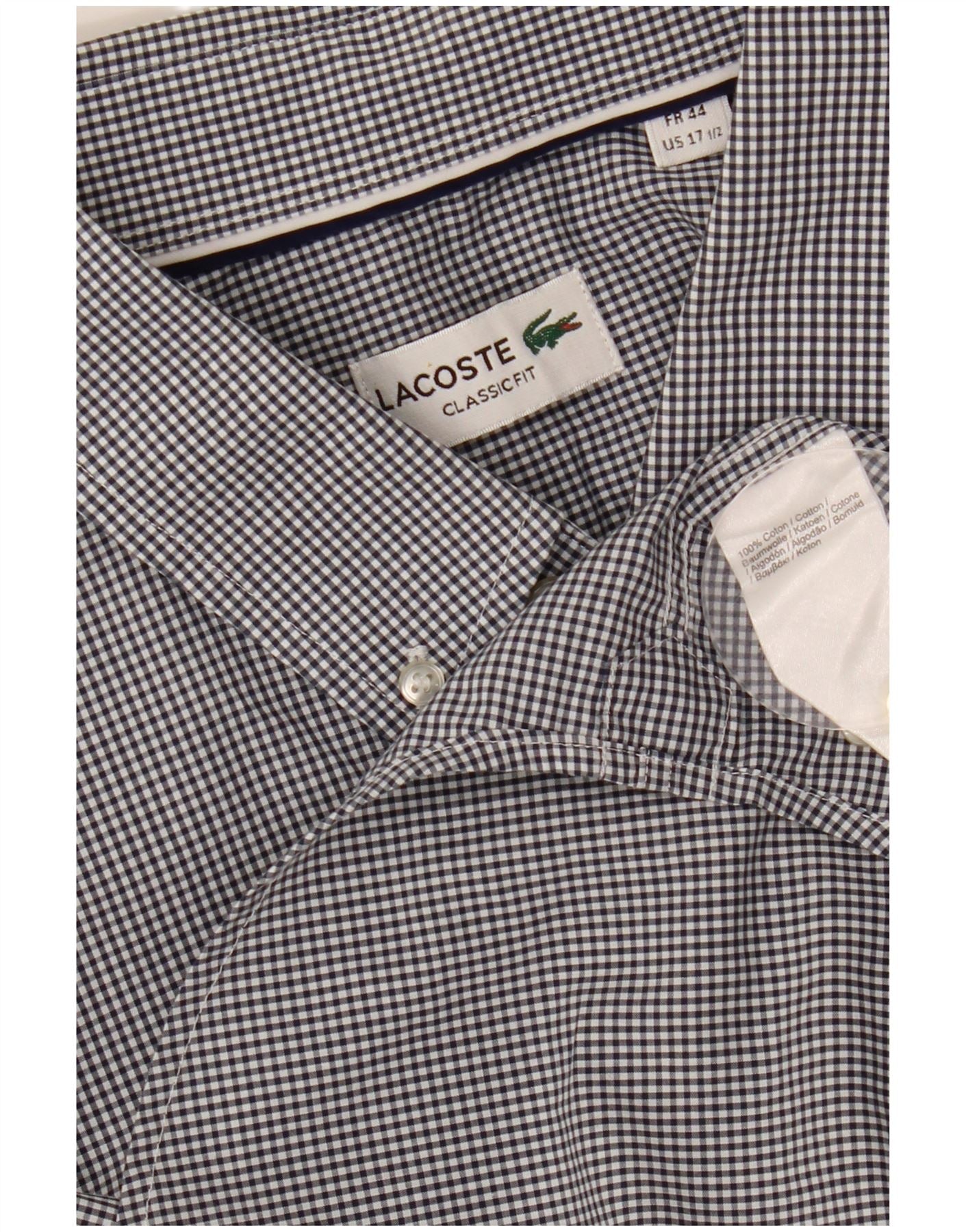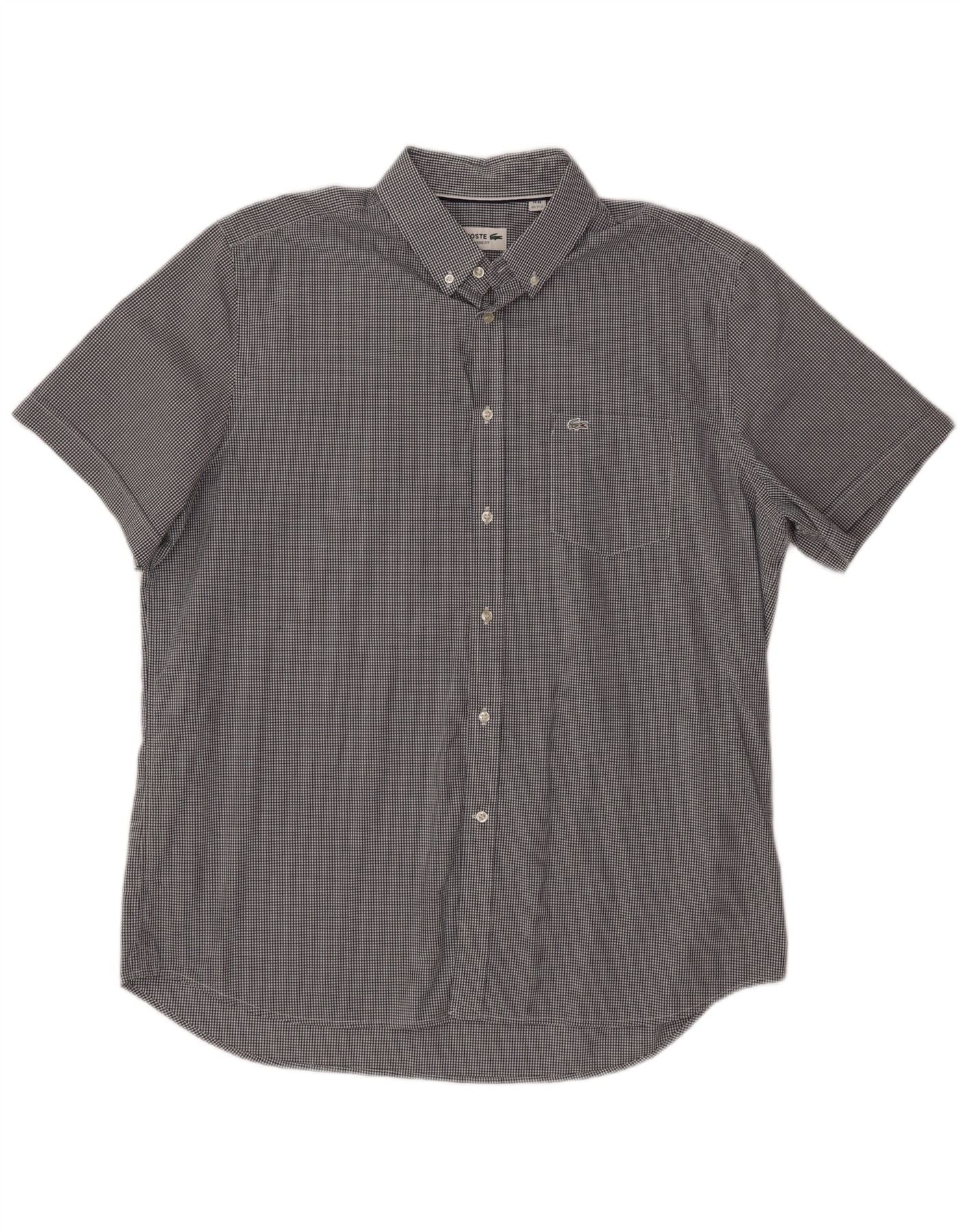 Camicia a maniche corte da uomo LACOSTE taglia 44 17 1/2 XL a quadretti neri