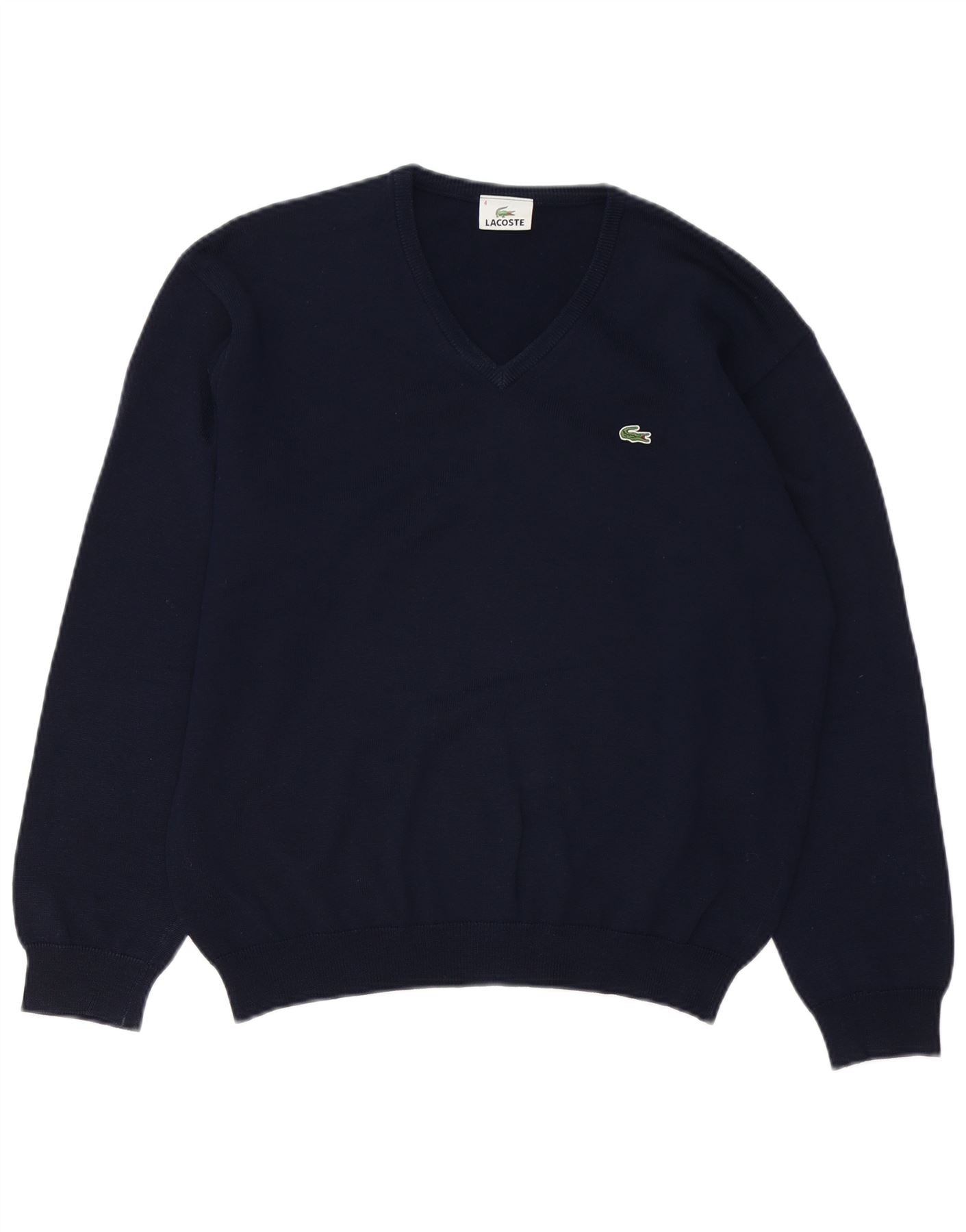 Maglione da uomo con scollo a V Lacoste taglia 4 medio blu navy in lana vergine