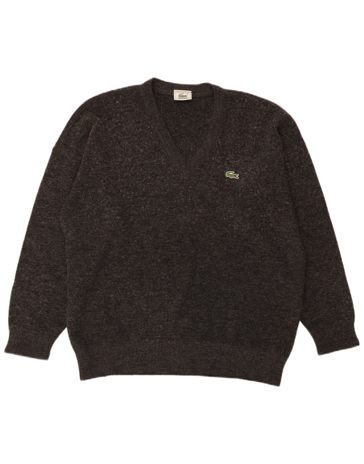 LACOSTE Maglione da uomo con scollo a V taglia 6 XL in lana grigia