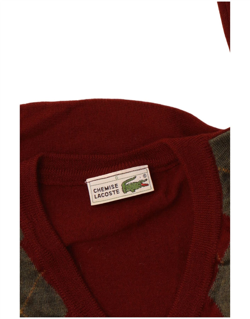 LACOSTE Maglione da uomo con scollo a V taglia 6 XL Rosso a rombi/diamante