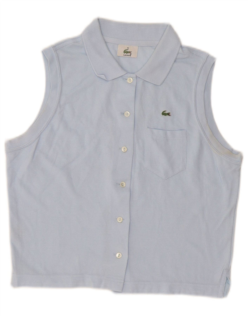 LACOSTE Womens Sleeveless Crop Shirt Blouse Size 42 Large Blue Cotton