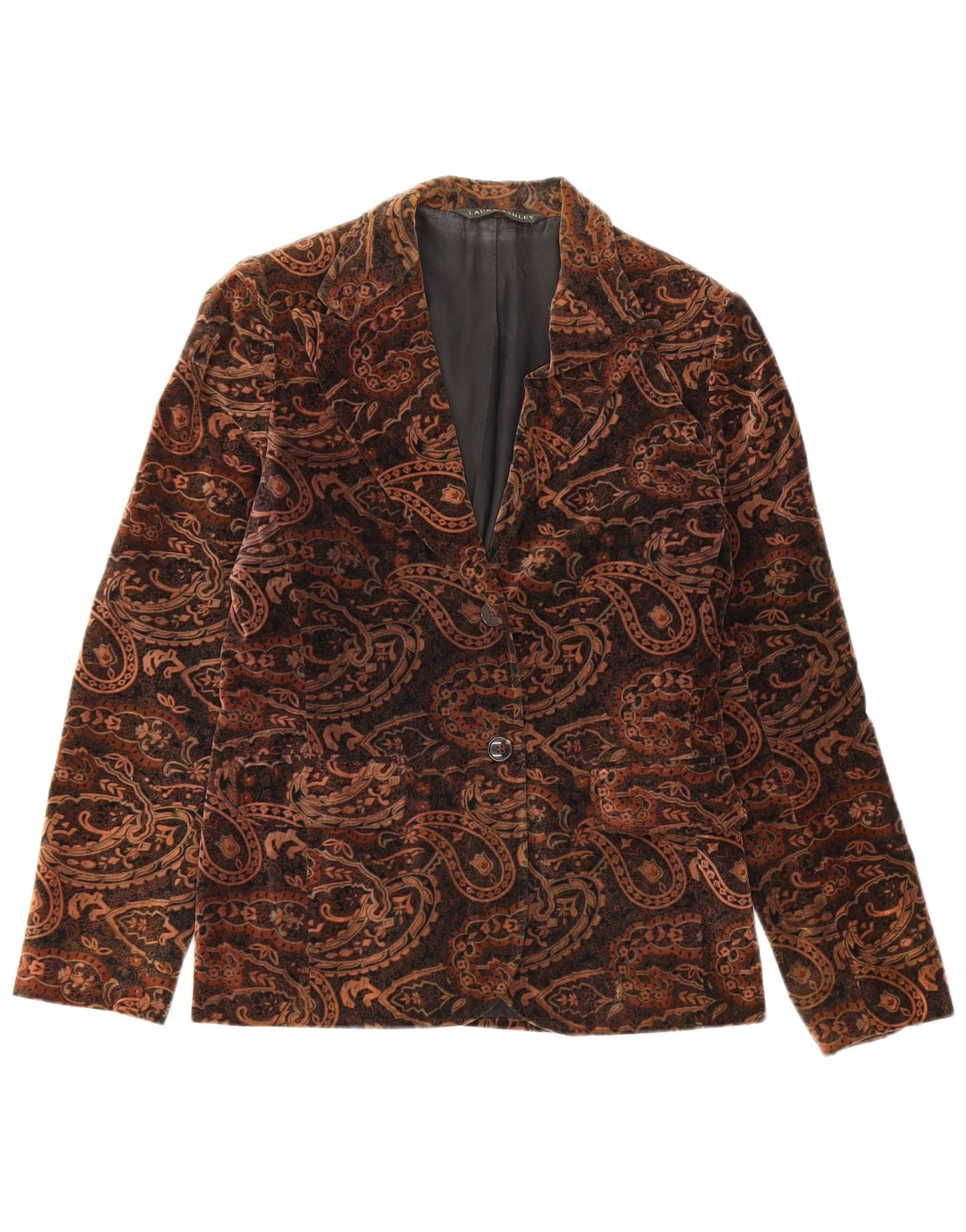 Giacca blazer in velluto a 2 bottoni da donna Laura Ashley UK 8 piccolo marrone Paisley
