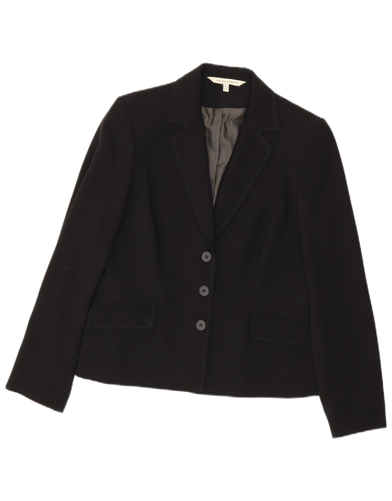 LAURA ASHLEY Womens 3 Button Blazer Jacket UK 14 Large Black Polyester