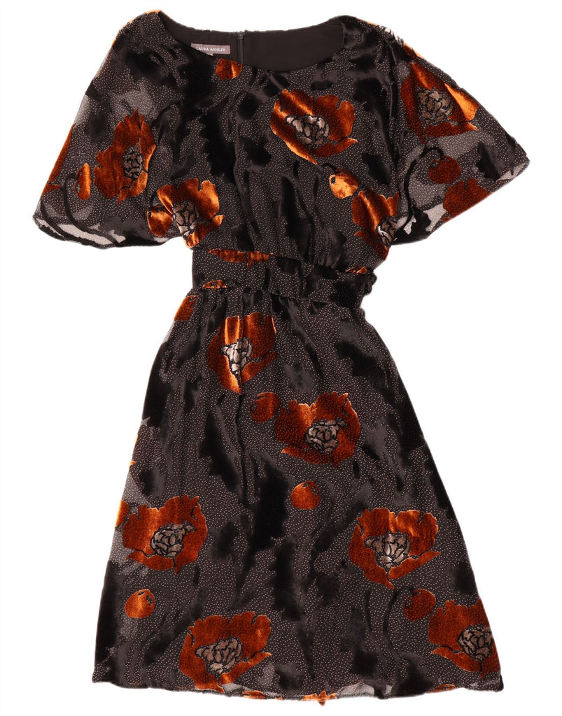 LAURA ASHLEY Womens Batwing A-Line Dress UK 14 Large Black Floral Viscose
