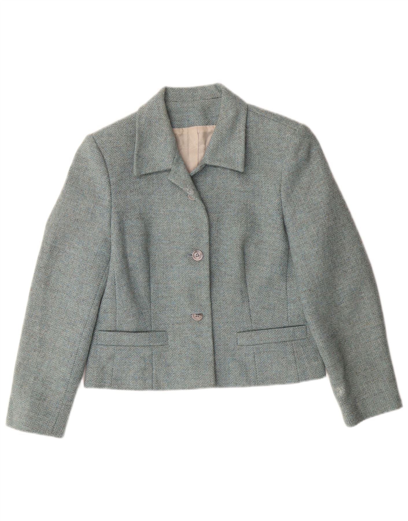 LAURA ASHLEY Giacca blazer a 3 bottoni corta da donna UK 12 Lana blu medio