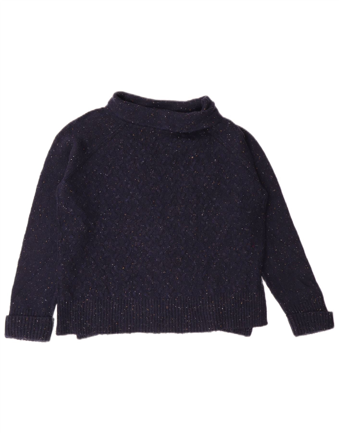 LAURA ASHLEY Maglione maglione da donna con collo alto UK 10 Piccolo blu navy screziato