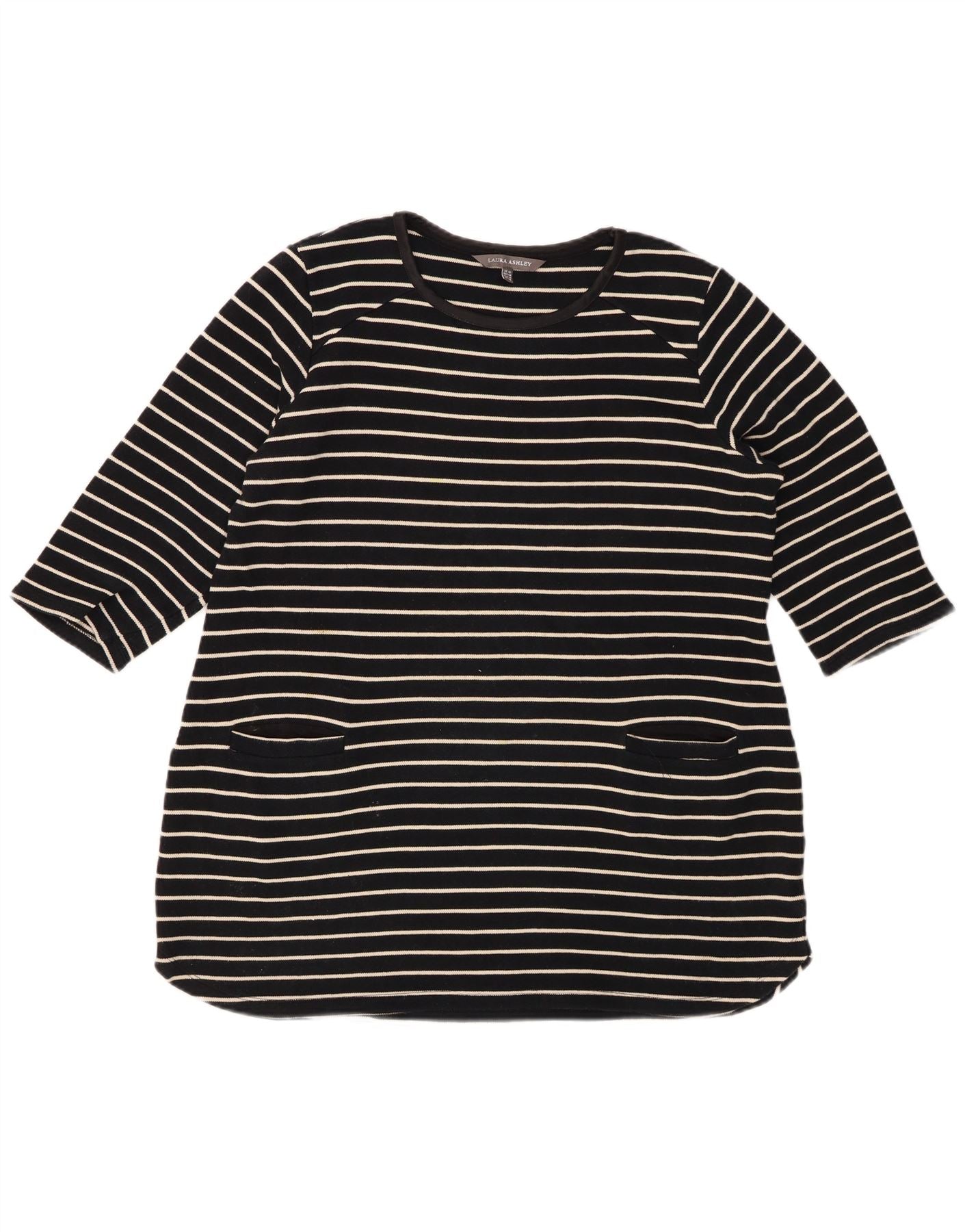 LAURA ASHLEY Top da donna manica 3/4 UK 18 XL cotone a righe nere