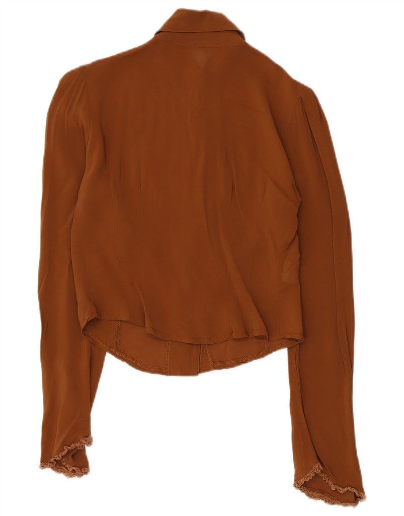 LE COMPLICI Womens Crop Shirt Blouse UK 12 Medium Brown Viscose