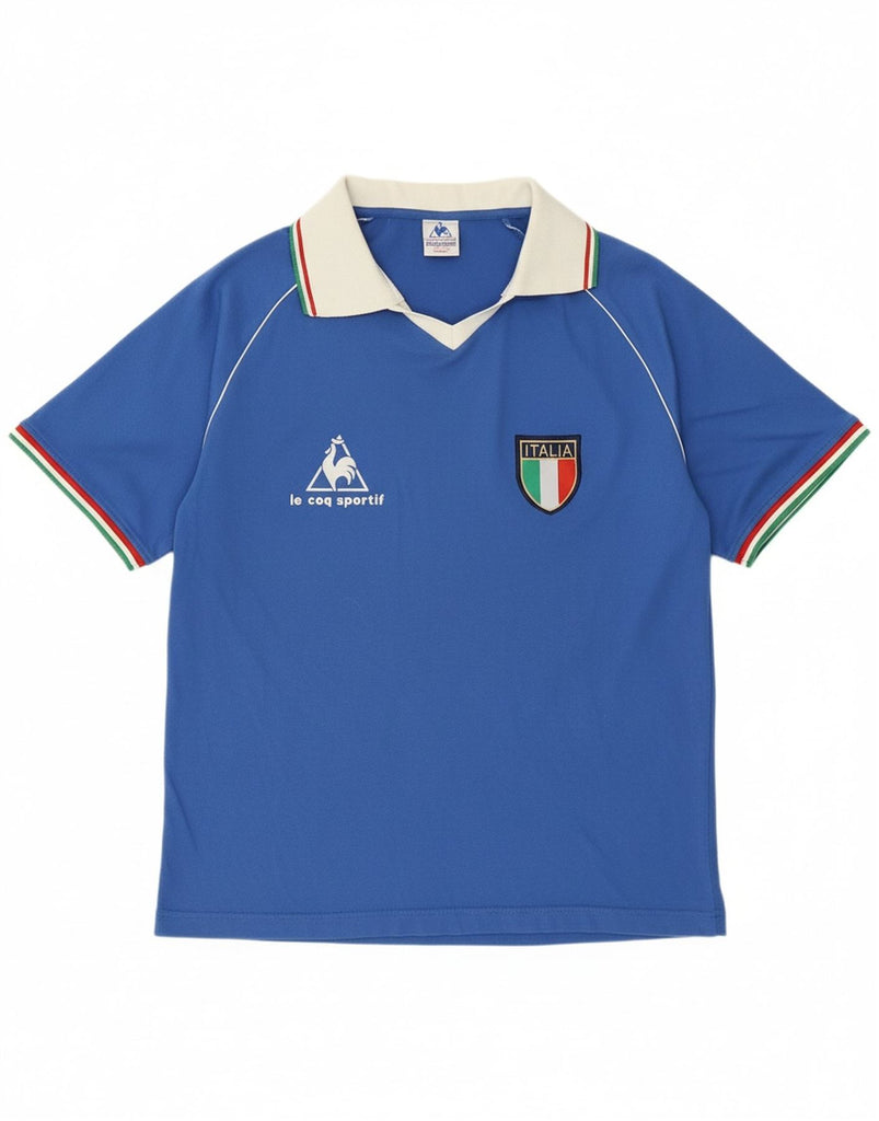 LE COQ SPORTIF Mens Italia Graphic Polo Shirt Small Blue Colourblock