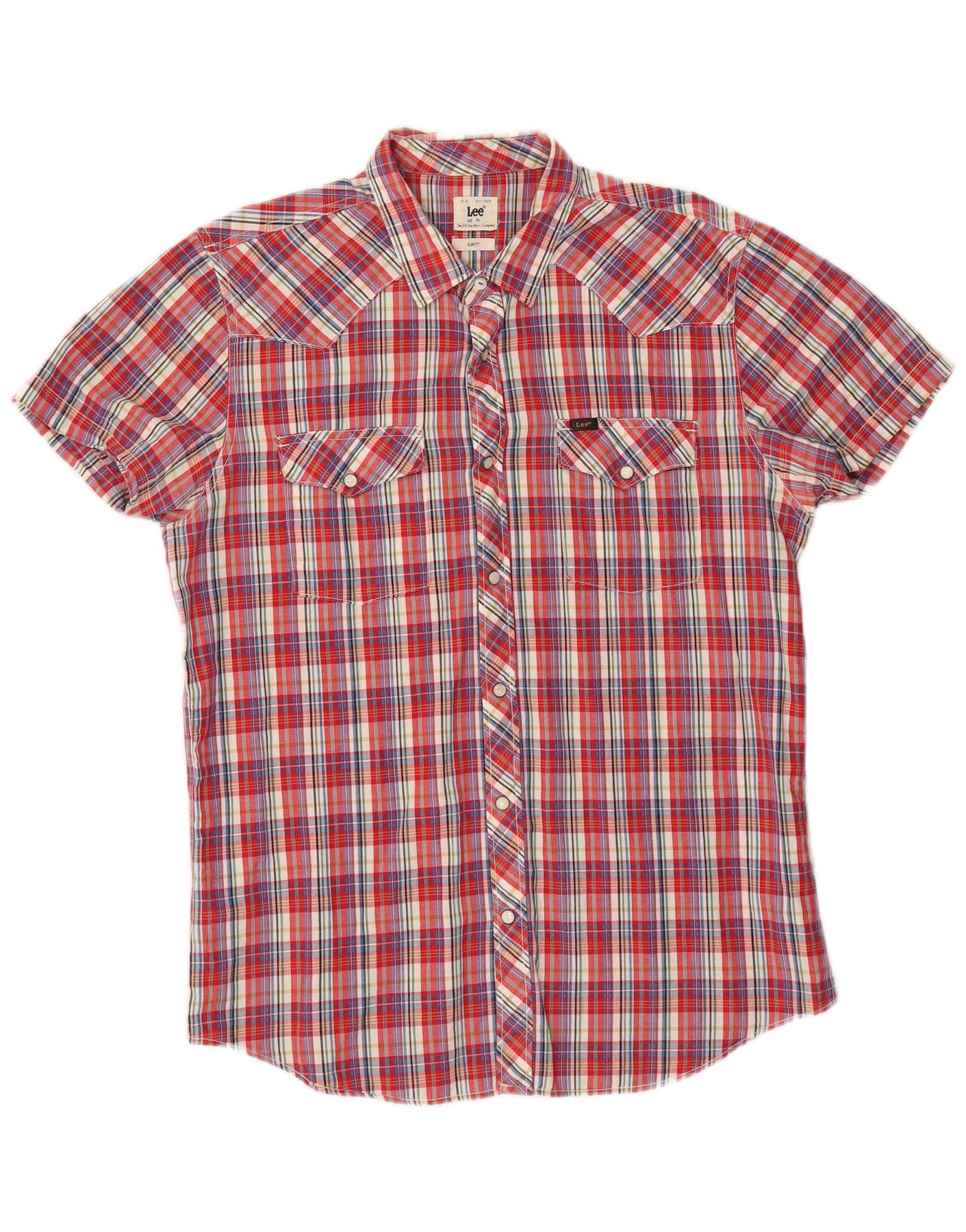 Camicia LEE da uomo slim fit a maniche corte XL in cotone a quadri rossi