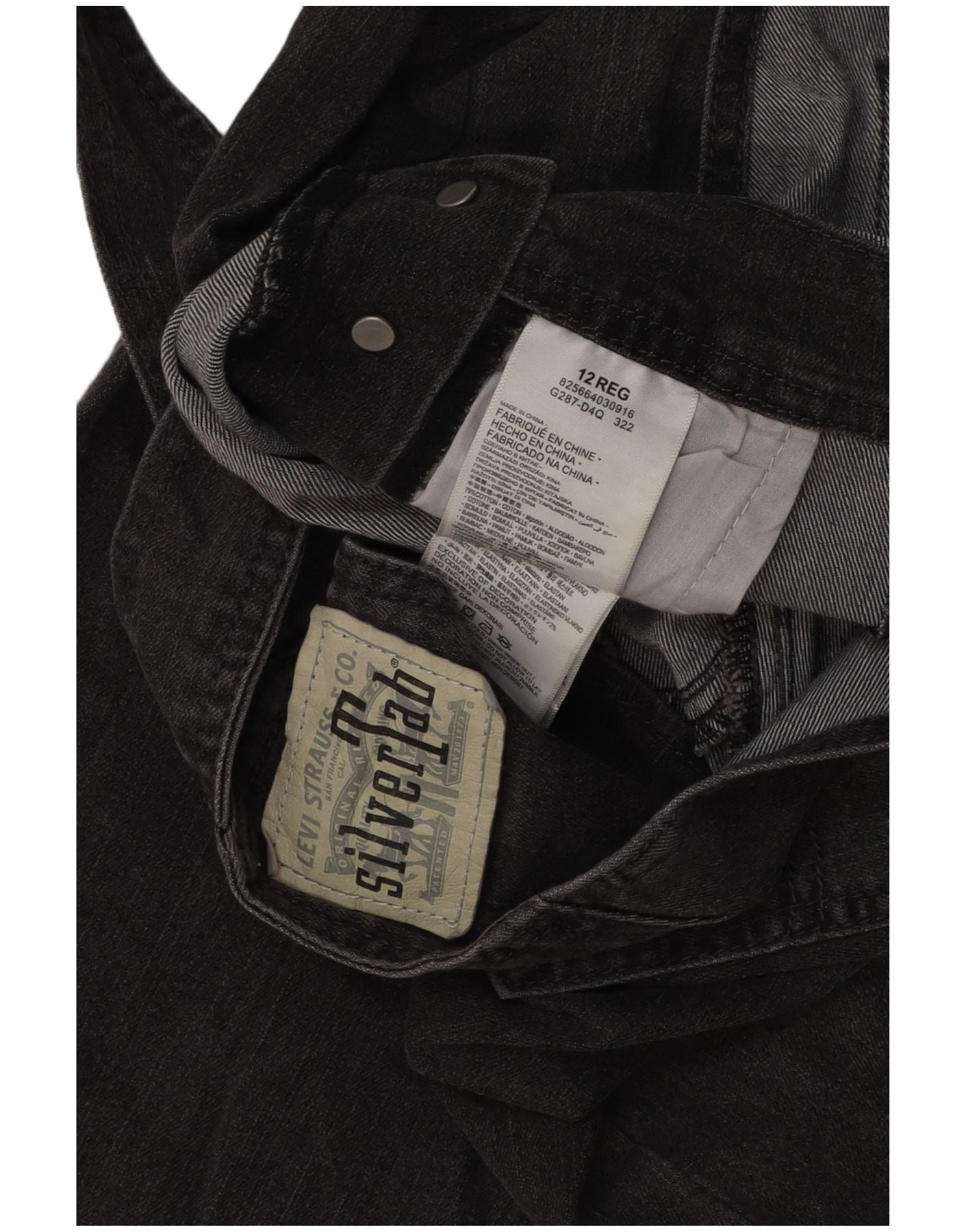 LEVI'S Salopette Jeans Dritto per Bambina 11-12 Anni W32 L24 Cotone Grigio