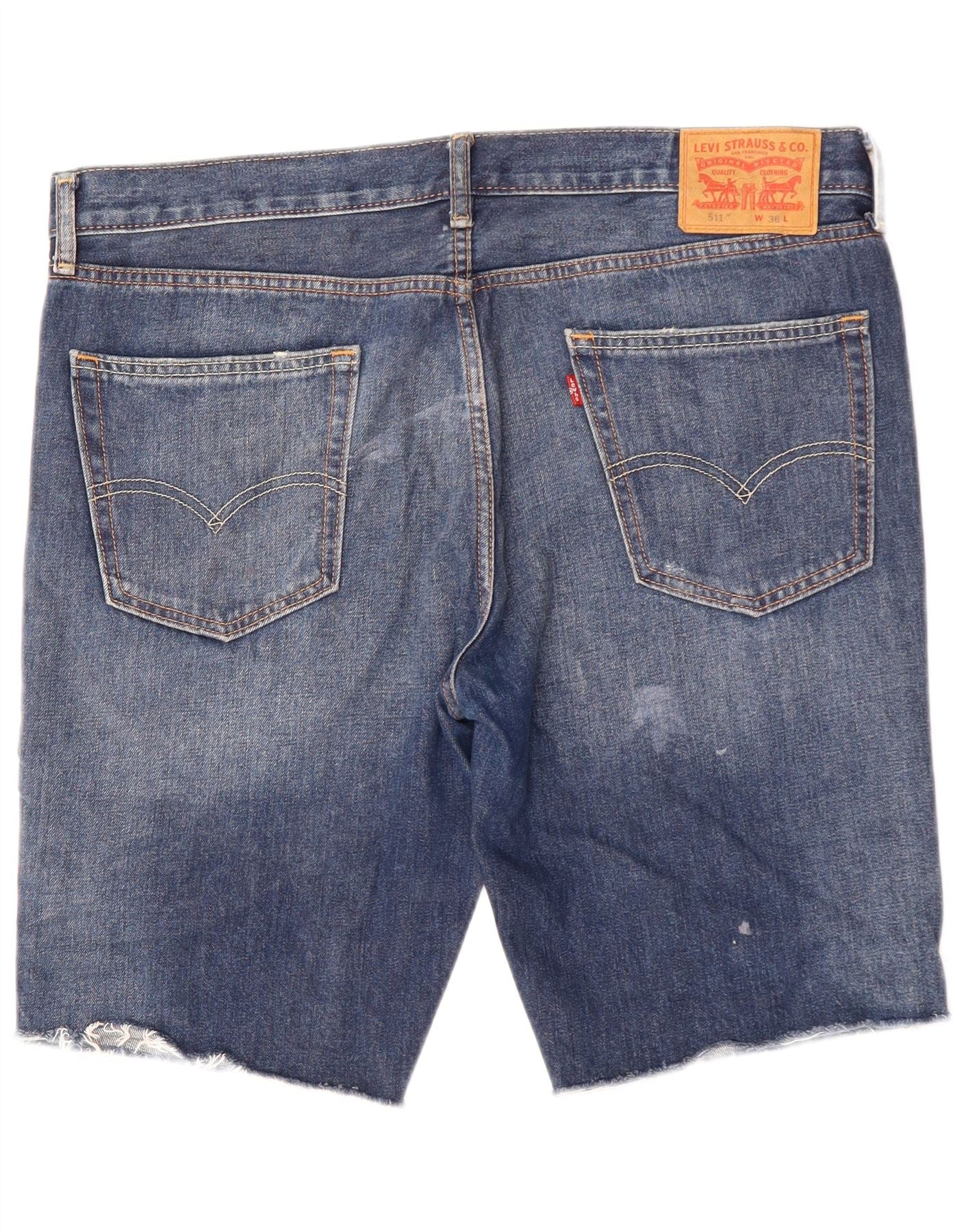 Levi's Uomo 511 Pantaloncini di jeans invecchiati W36 Large Blu Cotone
