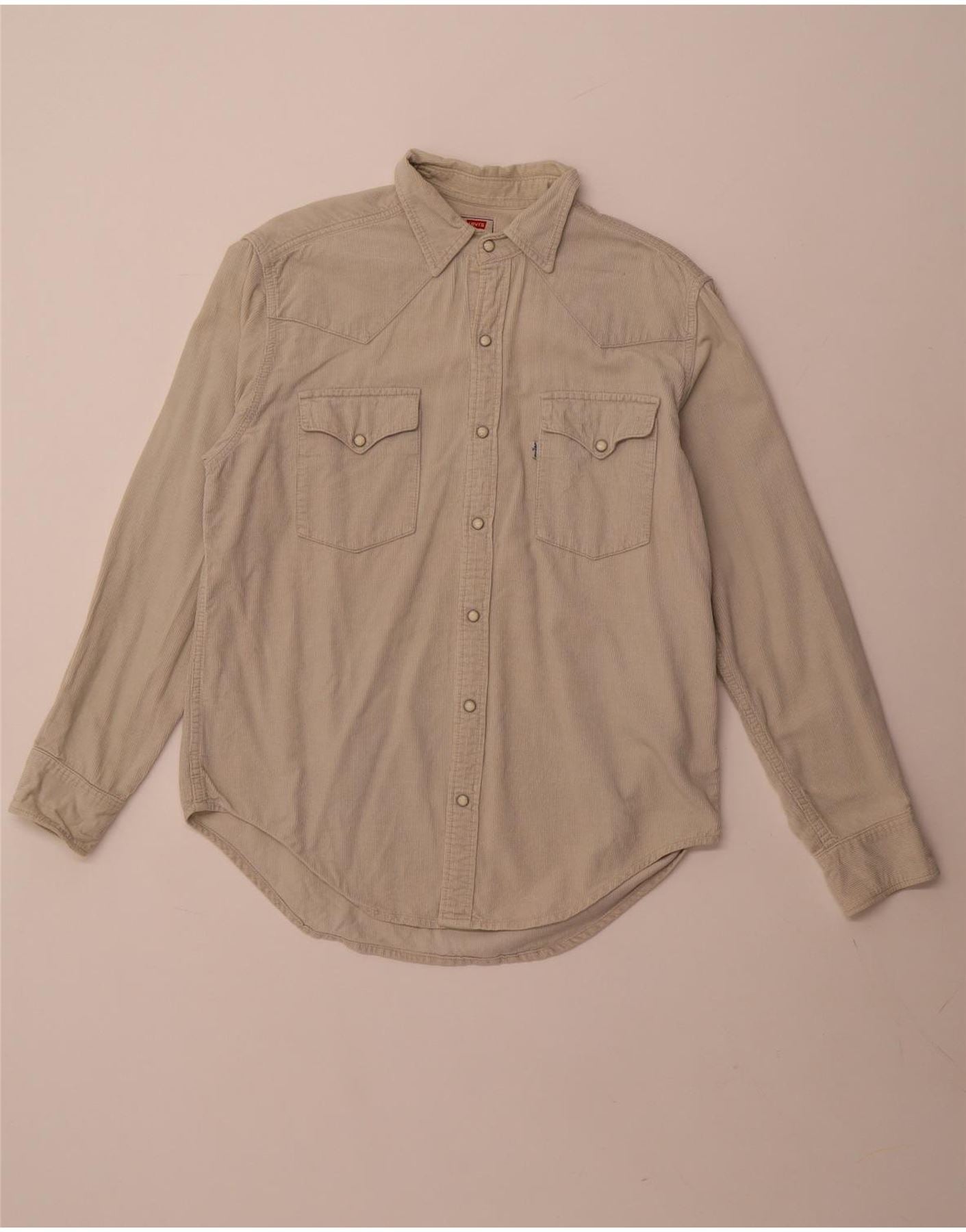 - Descrizione dell'IA: Questa camicia da uomo Levi's è realizzata in morbido velluto a coste beige, che offre una caratteristica trama a coste. Presenta un classico scollo con colletto e maniche lunghe con polsini con automatici. Lo stile occidentale è evidente con carré davanti e dietro e doppie tasche sul petto, fissate da chiusure a scatto. Una vestibilità regolare garantisce un'usura confortevole. Questo pezzo combina il fascino robusto con la praticità quotidiana.