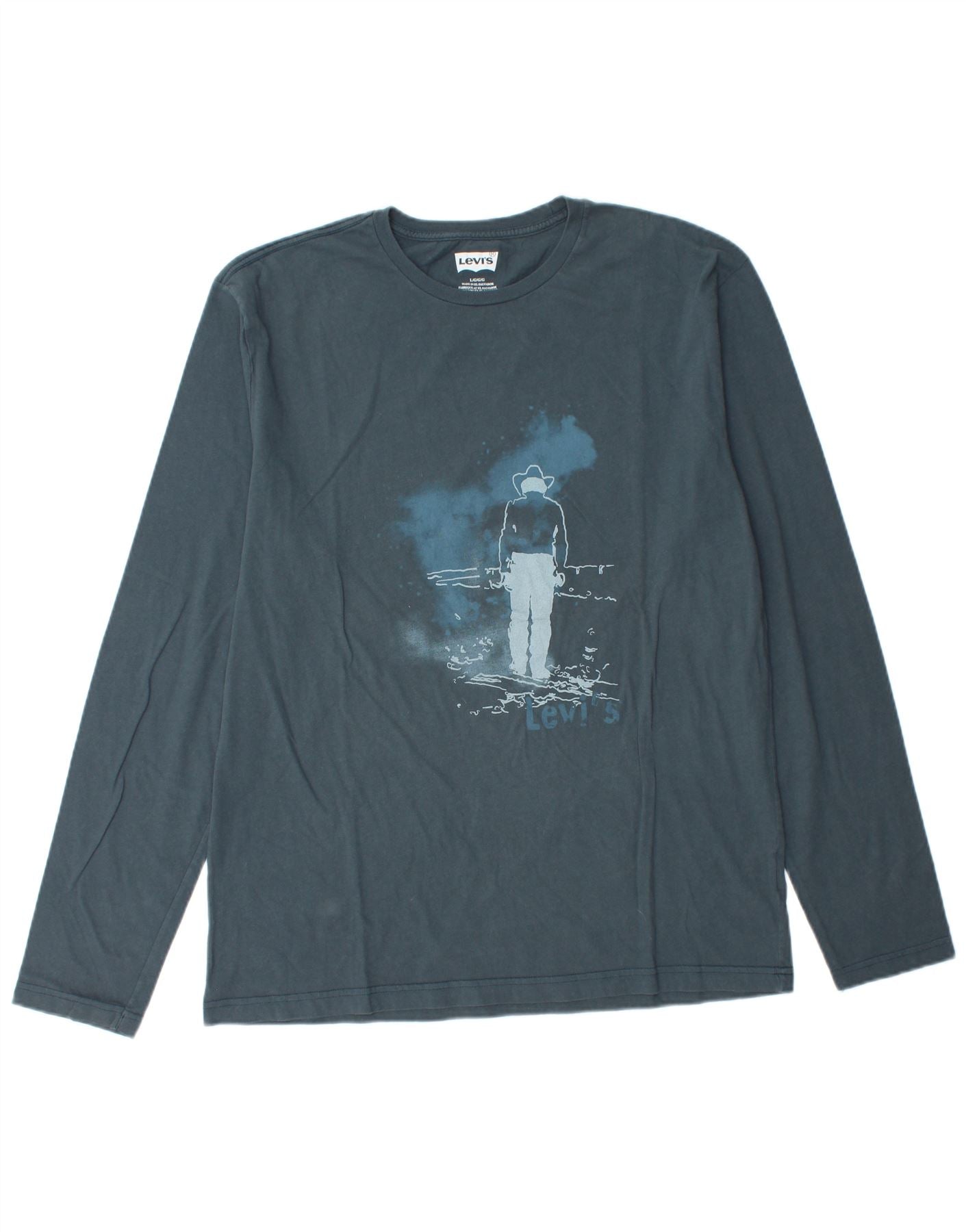 LEVI'S Top grafico da uomo a maniche lunghe grande in cotone blu navy