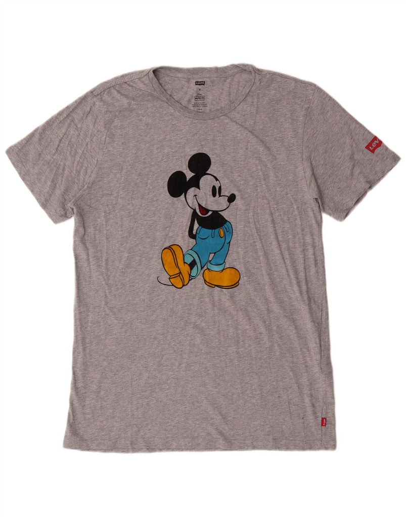 LEVI'S Mens Mickey Mouse Graphic T-Shirt Top Large Grey Cotton