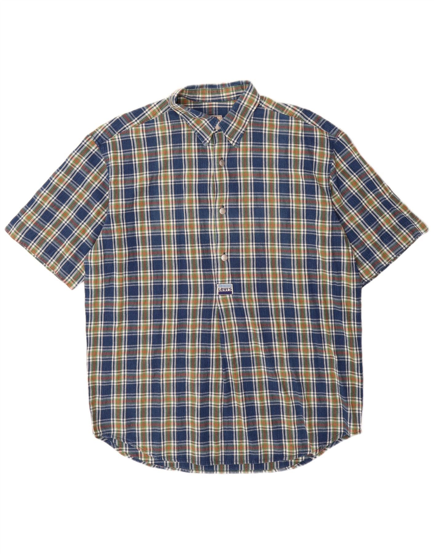 LEVI'S Camicia pullover a maniche corte da uomo in cotone a quadri blu grande