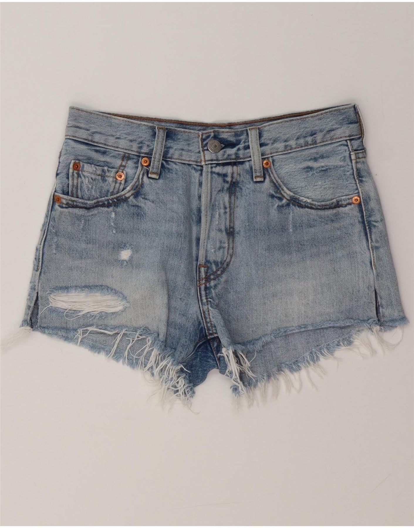 LEVI'S Pantaloncini di jeans invecchiati 501 da donna W24 XS Blu Cotone