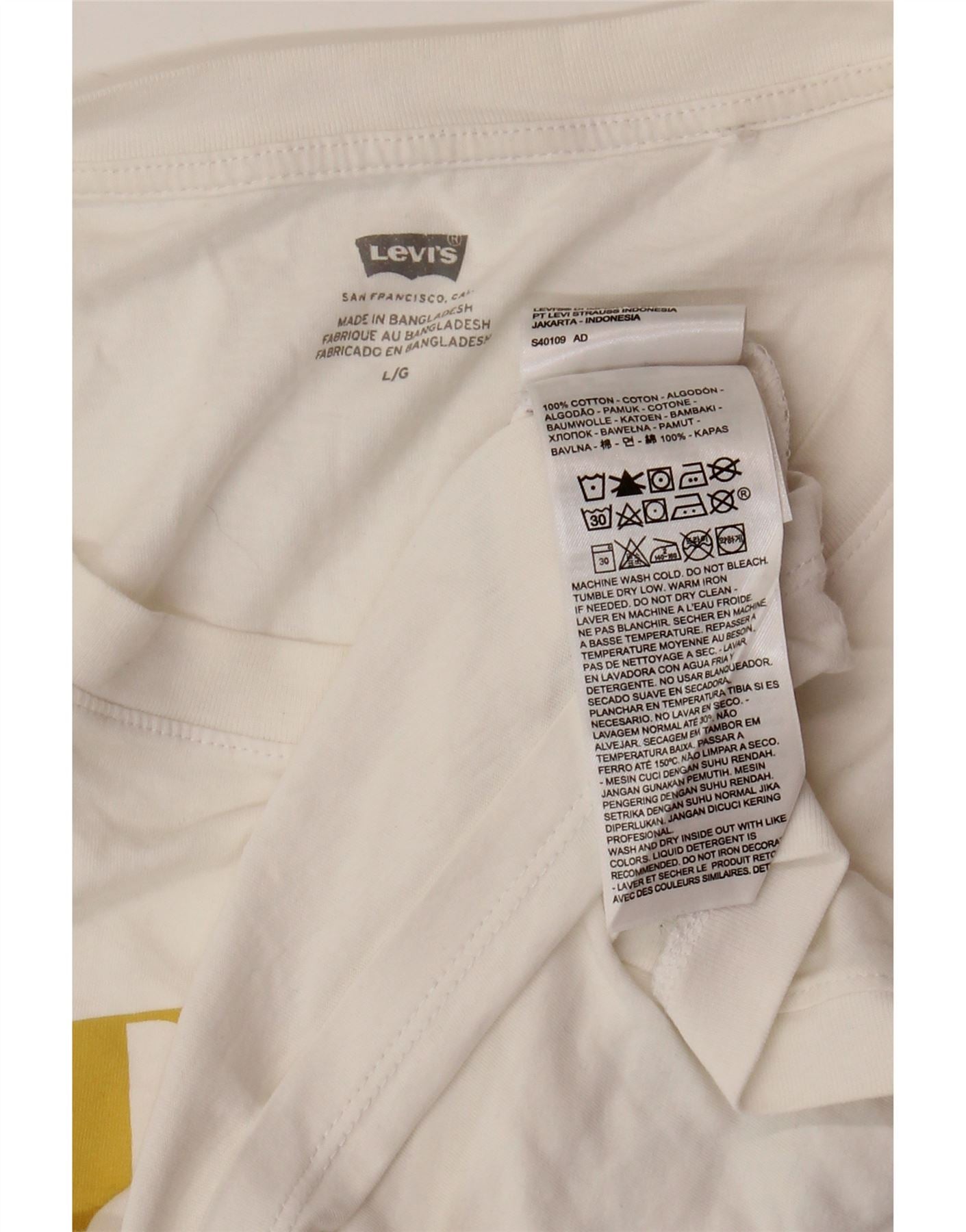 LEVI'S Canotta grafica corta da donna UK 16 Large Cotone bianco