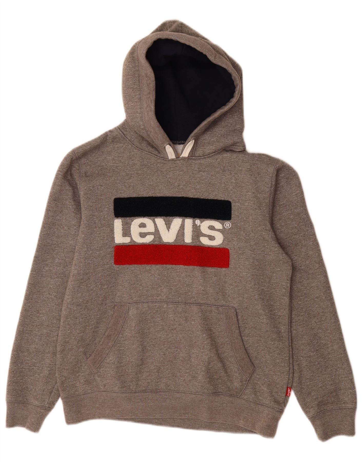 Maglione con cappuccio grafico da donna LEVI'S UK 16 grande cotone chiazzato grigio