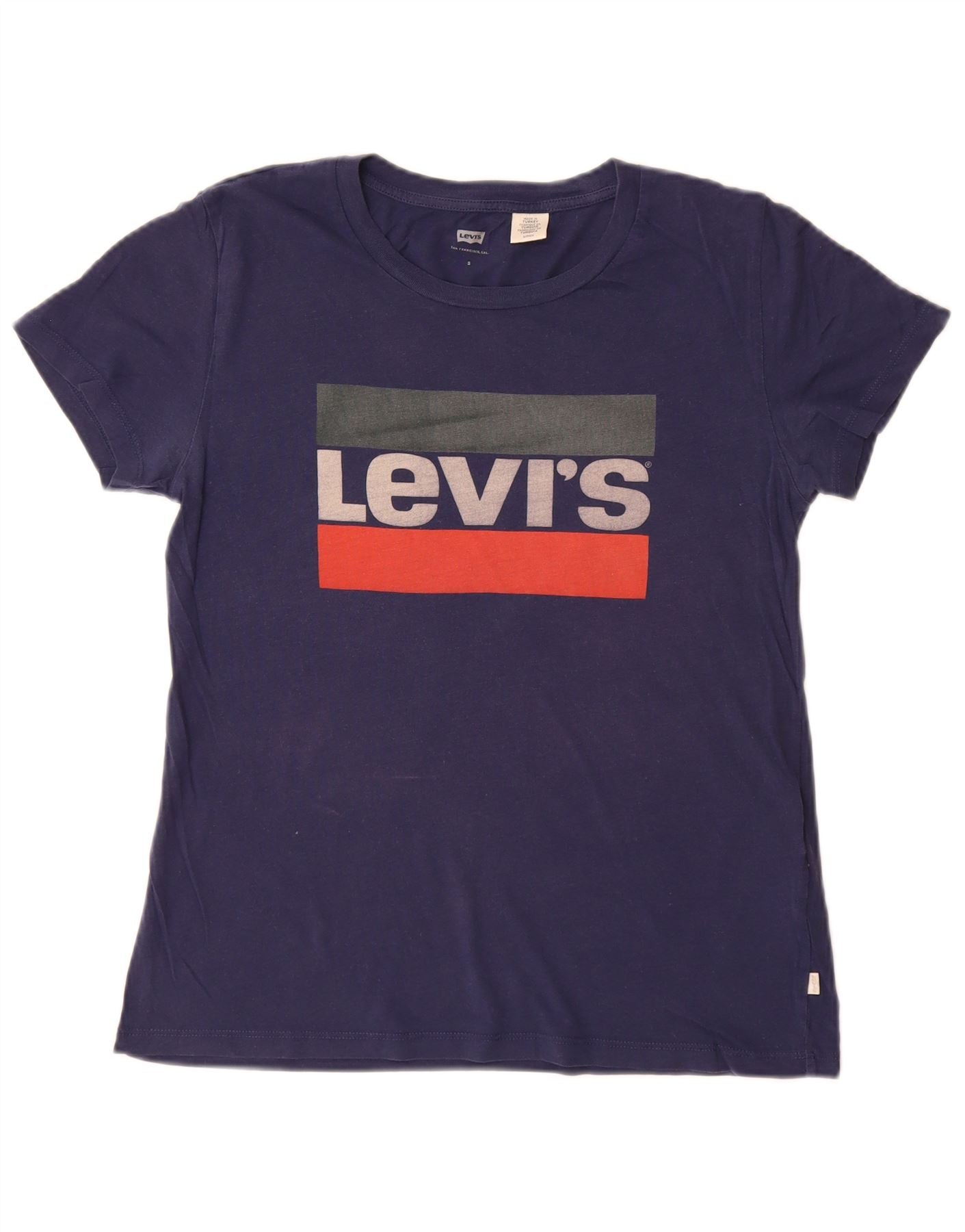 T-shirt grafica da donna LEVI'S Top UK 10 piccola in cotone blu navy
