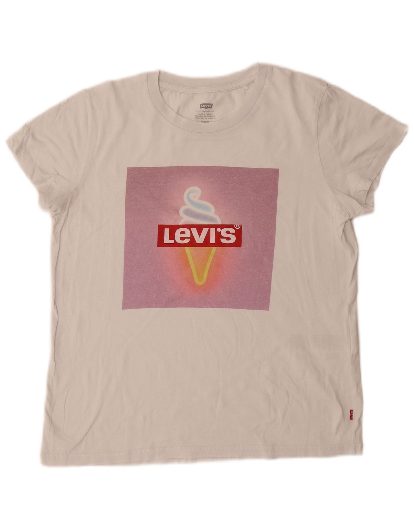 T-shirt grafica da donna LEVI'S Top UK 12 cotone bianco medio