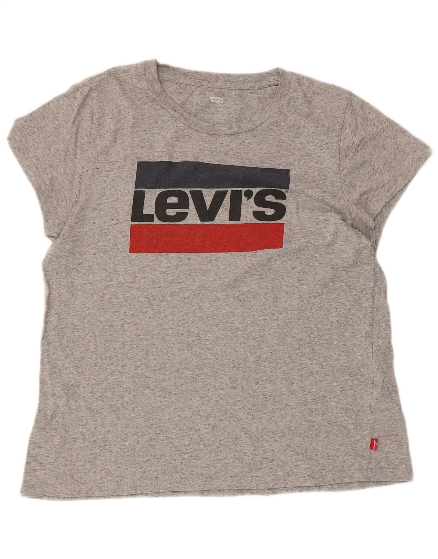 T-shirt grafica da donna LEVI'S Top UK 14 grande cotone chiazzato grigio