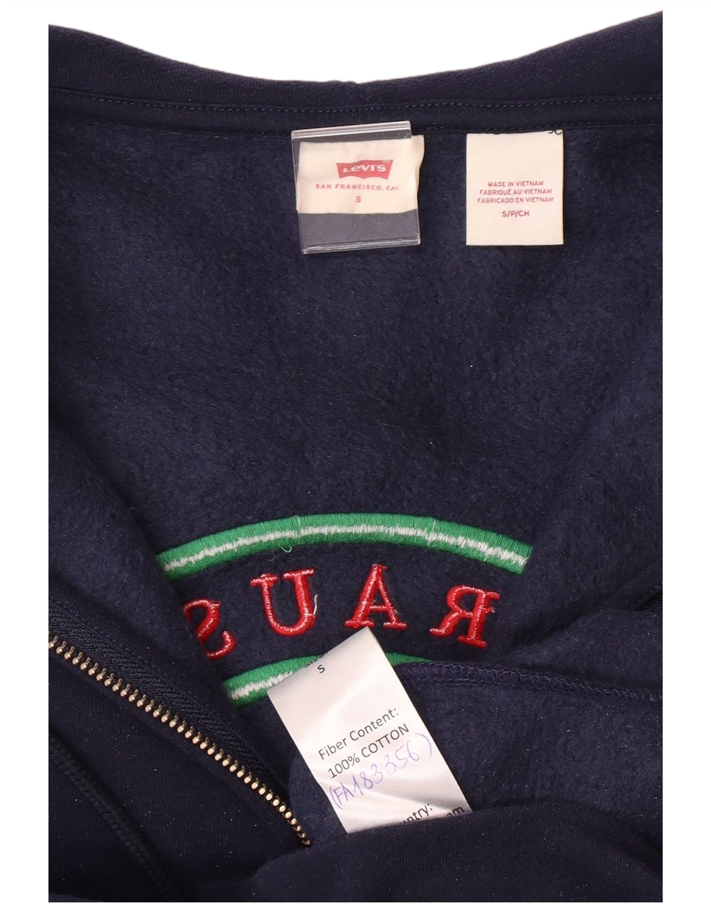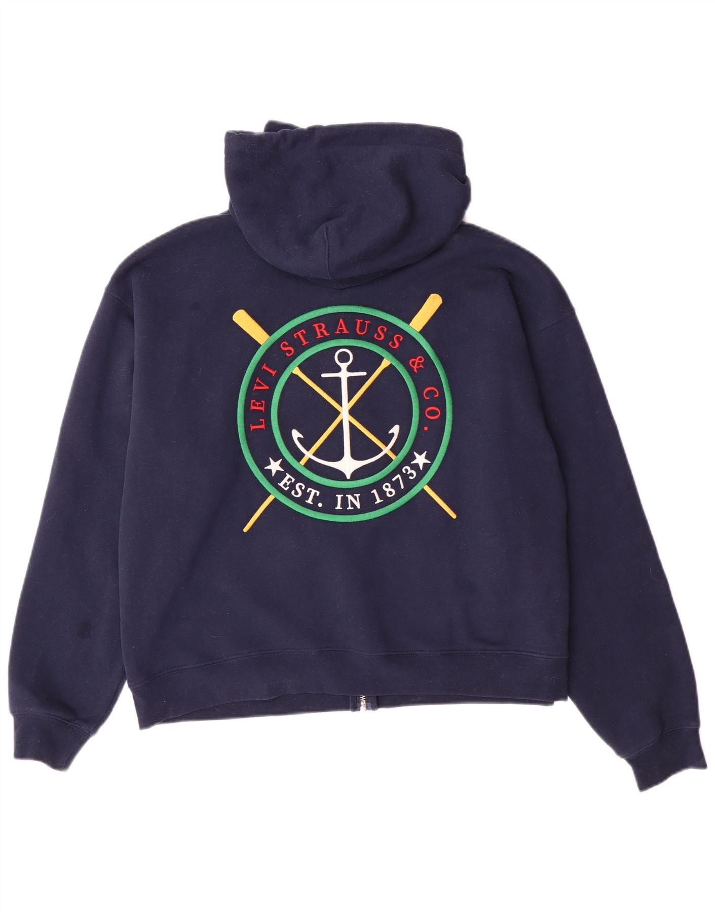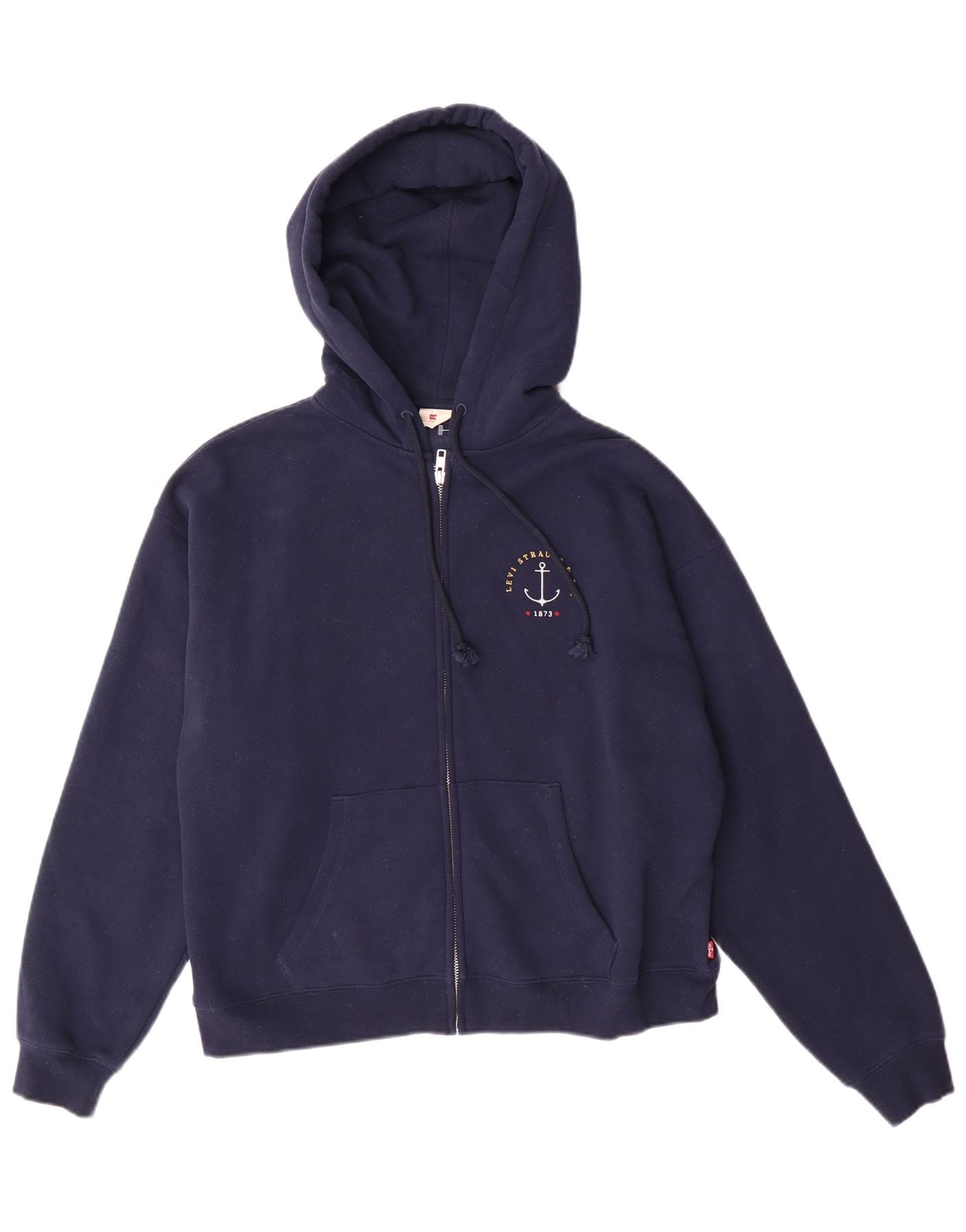 LEVI'S maglione con cappuccio e zip grafica oversize da donna UK 10 piccolo blu navy