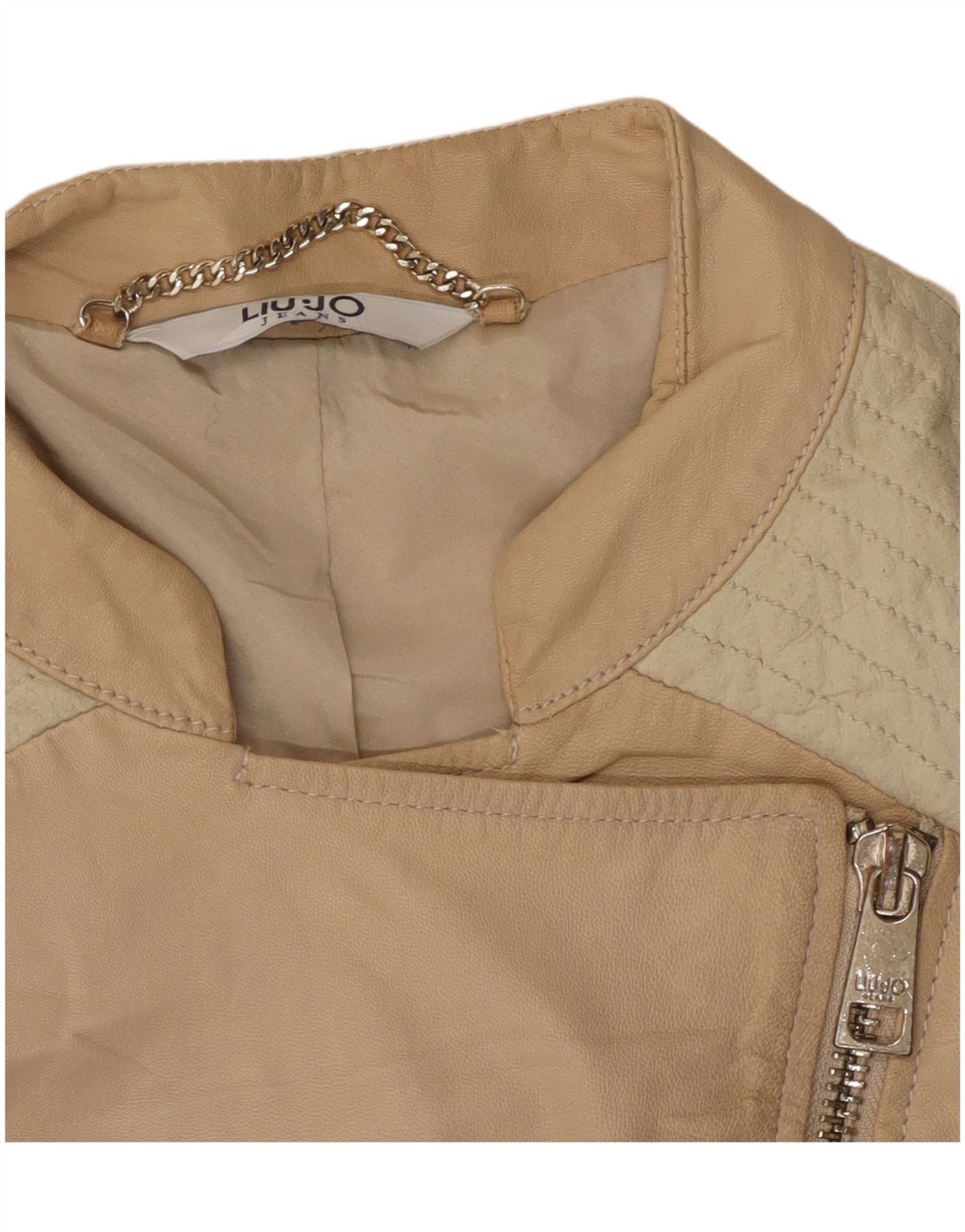 Giacca da motociclista corta da donna Liu Jo IT 42 Pelle color block beige medio