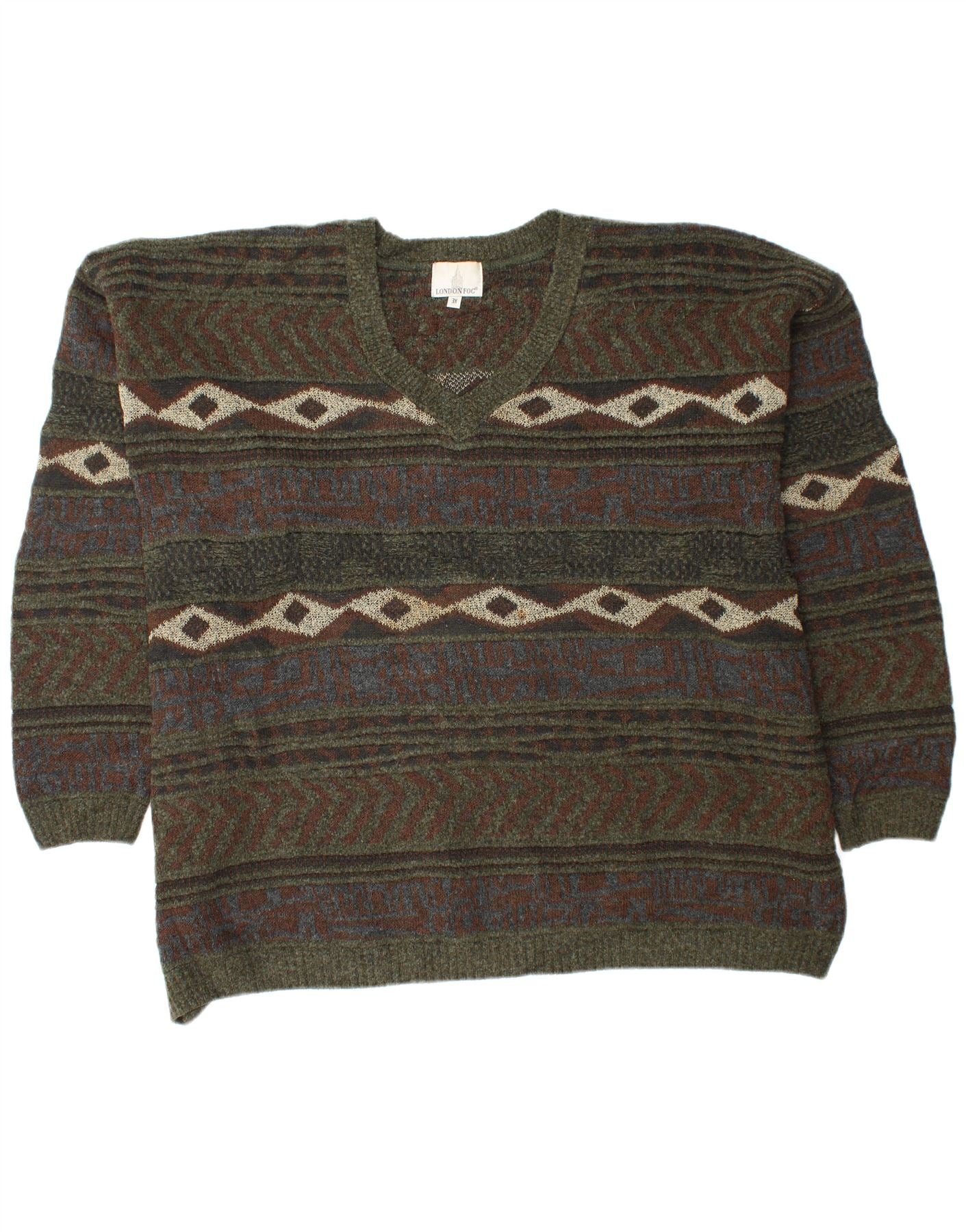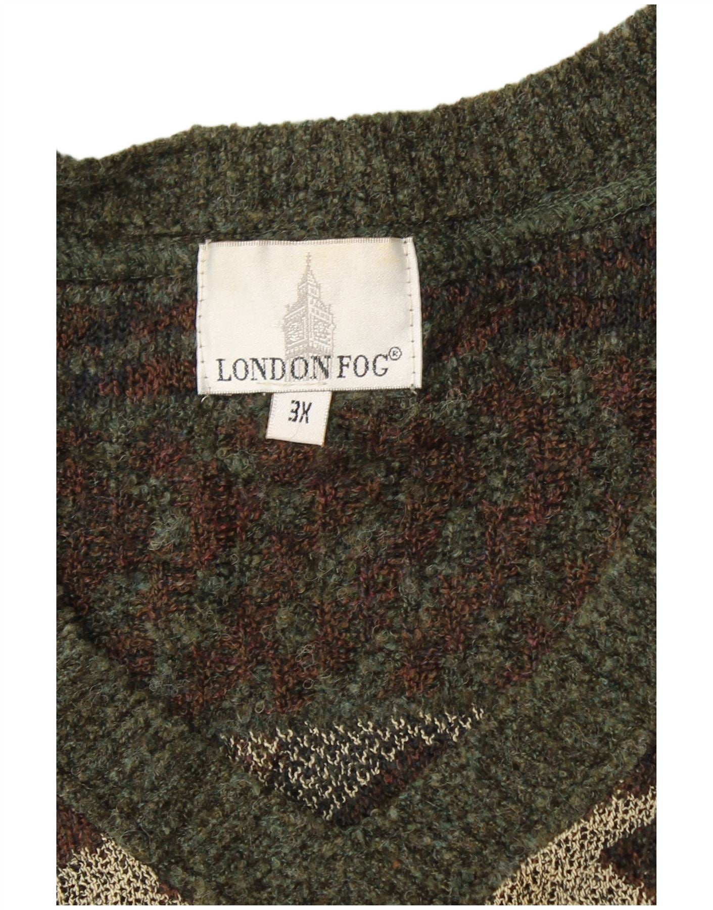 LONDON FOG Maglione da uomo con scollo a V 3XL Khaki Fair Isle